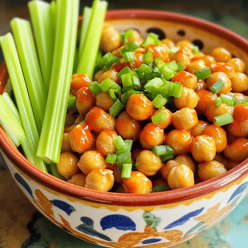 Serve your buffalo chickpeas in a bright bowl. A colorful dish makes everything look more fun. Garnish with chopped green onions for a fresh touch.