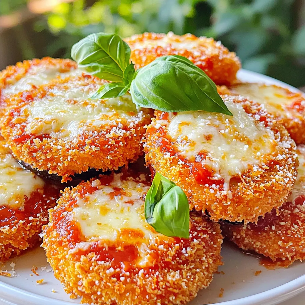 These ingredients come together to create a tasty and crispy dish. The eggplants provide a nice texture, while the cheese and sauce add rich flavor. You can find all these items at your local grocery store. Selecting good eggplants is key. Look for firm ones with shiny skin. They should feel heavy for their size. Fresh basil adds a lovely touch at the end.