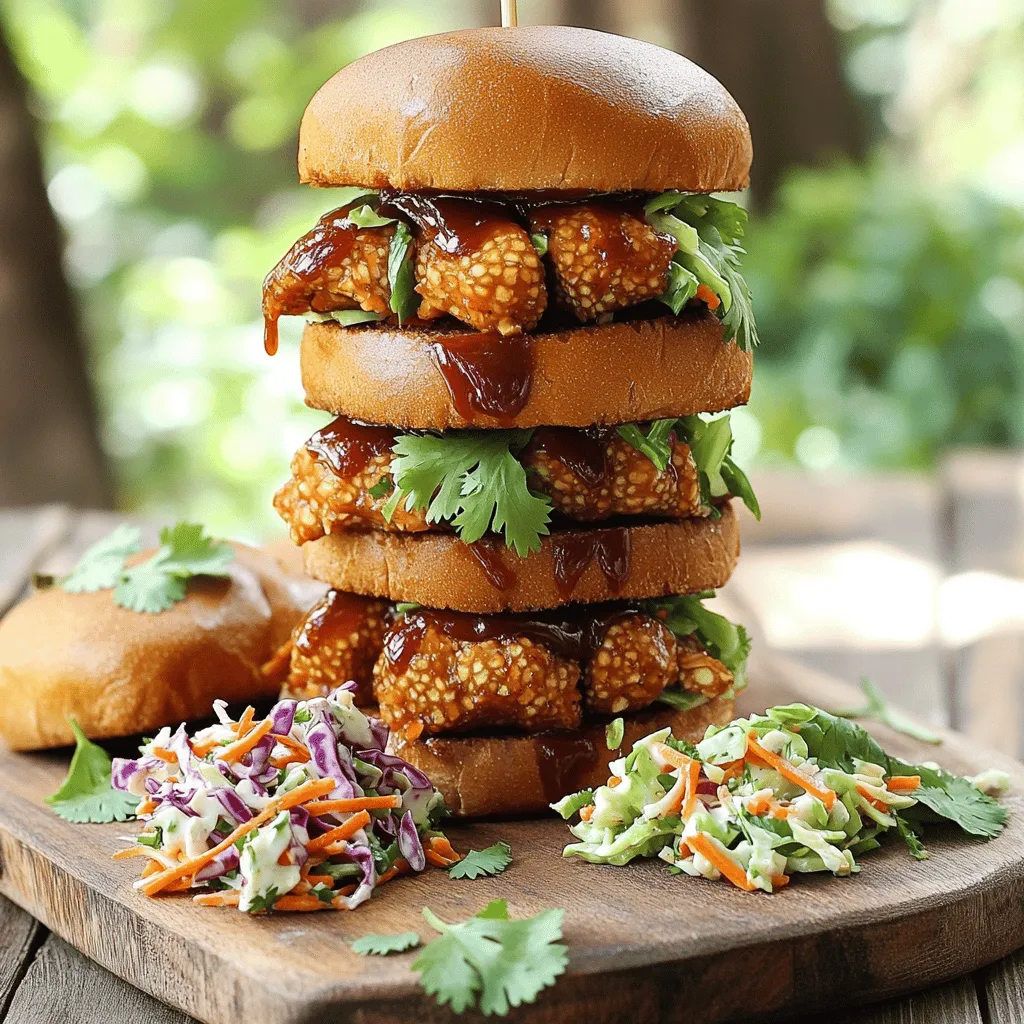 For the BBQ jackfruit sliders, you need: - 2 cans young green jackfruit in water or brine, drained and rinsed - 1 tablespoon olive oil - 1 small onion, finely chopped - 2 cloves garlic, minced - 1 cup BBQ sauce (homemade or store-bought) - 1 teaspoon smoked paprika - 1 teaspoon cumin - Salt and pepper to taste - 4 whole grain slider buns The jackfruit gives a great texture. It mimics pulled pork perfectly. The BBQ sauce adds the smoky, sweet flavor that ties it all together. For the slaw, gather these items: - 2 cups green cabbage, finely shredded - 1 cup red cabbage, finely shredded - 1 medium carrot, grated - 1/4 cup mayonnaise (or vegan alternative) - 1 tablespoon apple cider vinegar - 1 tablespoon maple syrup - Salt and pepper to taste This slaw brings crunch and freshness. The mix of cabbages adds color and taste. The dressing balances the dish with creaminess and tang. To elevate your sliders, consider these toppings: - Fresh herbs like cilantro or parsley - Pickles for extra crunch - Sliced jalapeños for heat These additions can enhance the sliders. They provide more flavor and make your dish look appealing. Enjoy experimenting with these options! To start, grab your pot and heat olive oil over medium heat. Add the finely chopped onion. Cook it for about five minutes until it turns clear. Next, toss in the minced garlic and cook for one more minute. You want to smell that garlic! Now, add the drained jackfruit. Use a fork to pull it apart, making it look like pulled pork. Pour in the BBQ sauce, smoked paprika, cumin, and season with salt and pepper. Mix it well. Lower the heat and let it simmer for 20 to 25 minutes. Stir it every now and then. The jackfruit needs to soak up those tasty flavors and get tender. While the jackfruit cooks, let’s whip up the slaw. Take a big bowl and combine the shredded green cabbage, red cabbage, and grated carrot. In a smaller bowl, mix together mayonnaise, apple cider vinegar, maple syrup, salt, and pepper. This dressing adds a nice touch! Pour the dressing over the cabbage mix and toss it well. Make sure every piece is coated. Now comes the fun part! Grab your whole grain slider buns. Take the bottom half of each bun and add a good scoop of BBQ jackfruit. Don’t be shy—make it generous! Next, add a scoop of slaw on top. Place the top half of the bun over it. If needed, use a toothpick to keep it all together. Repeat this process for the rest of the buns. Your sliders are now ready to impress! When picking jackfruit, choose young green jackfruit. Look for cans labeled "young" or "green." Avoid ripe jackfruit. The ripe ones are sweet and not good for savory dishes. Check for a firm texture when you open the can. Drain and rinse the jackfruit to remove any brine flavor. This helps it absorb the BBQ sauce better. To boost flavor, use a mix of spices. Smoked paprika adds a nice, smoky note. Cumin brings warmth and earthiness. Always taste as you cook. Add salt and pepper to enhance the dish. Let the jackfruit simmer low and slow. This allows it to soak up the BBQ sauce and spices fully. For an extra kick, try adding a splash of hot sauce to the BBQ mix. You can cook jackfruit in several ways. The stovetop method is quick and easy. Sauté the onion and garlic first, then add jackfruit. If you prefer, you can grill the jackfruit. This adds a nice char and depth to the flavor. Another option is to use a slow cooker. Cook it on low for several hours for super tender jackfruit. This method works great if you plan to serve a crowd. {{image_2}} You can use many kinds of BBQ sauce for these sliders. A tangy sauce can add a nice bite. A sweet sauce can balance the flavors well. Try a smoky BBQ sauce for extra depth. You can even make your own sauce at home. Just mix ketchup, vinegar, and spices for a quick blend. Experiment with flavors until you find your favorite. The slaw can change with different dressings. A yogurt-based dressing can make it creamy and light. You might also try a vinaigrette for a zesty twist. For a sweet touch, add some honey to the dressing. If you want a spicy kick, try adding chili flakes. Each dressing can change the whole taste of the dish. You can add more to your sliders for extra flair. Sliced jalapeños can bring some heat. Avocado can give it a rich creaminess. You might like to sprinkle some fresh herbs, like cilantro or parsley, on top. A slice of pickled onion can also add a nice crunch. Each addition brings a new flavor to enjoy. After your BBQ Jackfruit Sliders, you may have leftovers. To store the jackfruit, let it cool down first. Place it in an airtight container. This keeps the moisture in. Store it in the fridge for up to four days. If you want to keep it longer, freeze it. Use a freezer-safe bag or container. It can last for about three months in the freezer. When you’re ready, just thaw it in the fridge overnight. To keep your slaw fresh, store it in a separate container. Use an airtight container to avoid wilting. The slaw will stay fresh for about three days in the fridge. If you want to store it longer, do not mix in the dressing. Keep the dressing separate until you're ready to eat. This helps the slaw stay crisp and tasty. When you're ready to enjoy your leftover jackfruit, reheat it on the stove. Place it in a pan over medium heat. Stir occasionally until it's heated through. This usually takes about five to seven minutes. You can also microwave it. Just place it in a microwave-safe bowl and heat for one to two minutes. Stir halfway to make sure it heats evenly. If you are reheating slaw, enjoy it cold. If you prefer it warm, lightly toss it in a pan until heated. Yes, you can make BBQ jackfruit sliders ahead of time. Cook the jackfruit and slaw in advance. Store each in separate airtight containers. Keep them in the fridge for up to three days. When ready to serve, heat the jackfruit gently. Assemble the sliders just before eating for the best taste. Yes, jackfruit is a healthy meat substitute. It is l