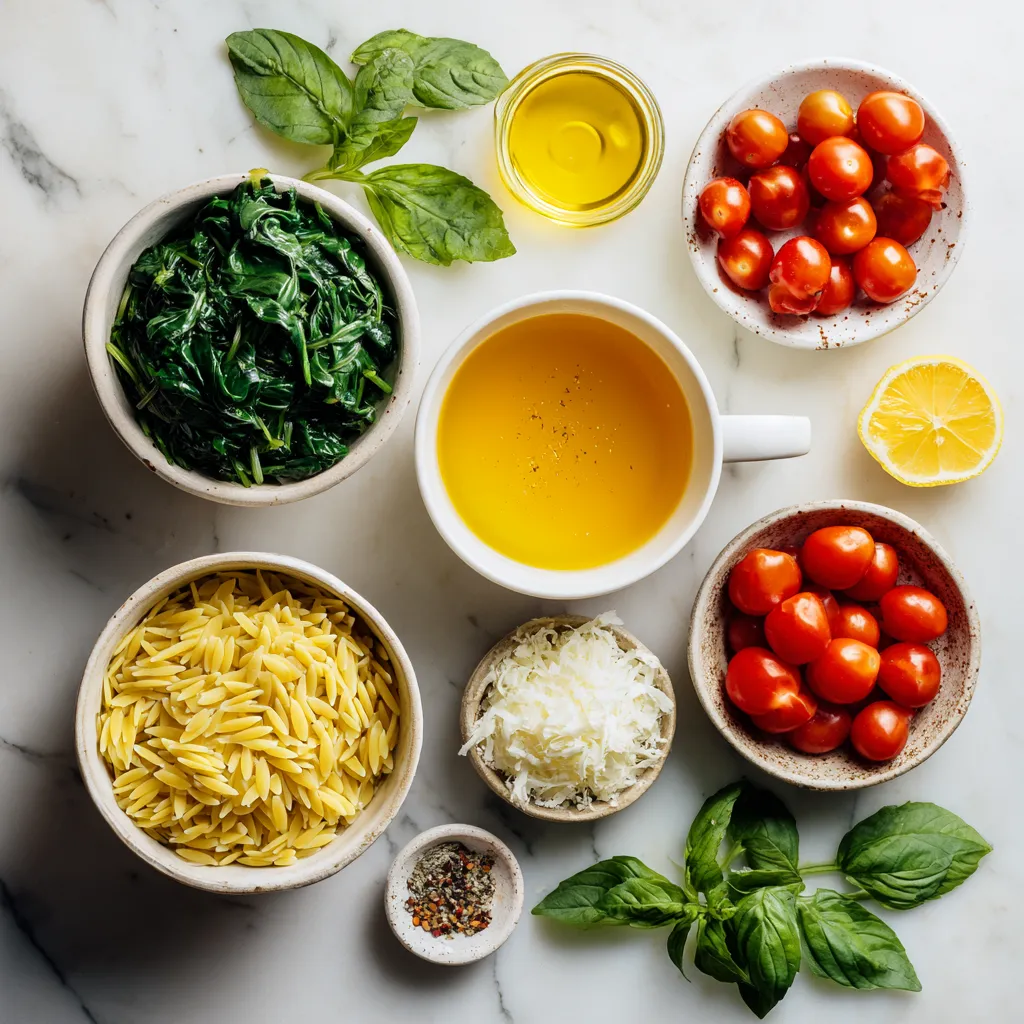 - 1 cup orzo pasta - 2 cups vegetable broth - 1 tablespoon olive oil - 2 cloves garlic, minced - 4 cups fresh spinach, chopped - 1 cup cherry tomatoes, halved - 1 teaspoon lemon zest - 2 tablespoons lemon juice - 1 cup ricotta cheese - 1 cup shredded mozzarella cheese - Salt and pepper to taste - Fresh basil, for garnish Each ingredient plays a key role in making this dish tasty. The orzo pasta gives it a nice texture. Using vegetable broth adds depth to the flavor. Olive oil helps sauté the garlic and spinach. Fresh spinach brings color and nutrition. Cherry tomatoes add sweetness and brightness. Lemon zest and juice bring a fresh zing. Ricotta cheese makes it creamy, while mozzarella gives that gooey finish. This dish serves four people. Each serving has about: - Calories: 400 - Protein: 15g - Carbs: 45g - Fat: 20g - Fiber: 3g This orzo dish is filling and balanced. It has good protein from cheese and some fiber from spinach. It’s a great choice for a quick meal. You can swap some ingredients if you like. For a gluten-free option, use rice or quinoa instead of orzo. If you want a lighter cheese, try cottage cheese. You can use frozen spinach if fresh isn’t available. For added flavor, try different herbs like thyme or oregano instead of basil. {{ingredient_image_1}} Start by bringing 2 cups of vegetable broth to a boil. I use a medium pot for this. Once it boils, add 1 cup of orzo pasta. Cook it for 8 to 10 minutes. You want it al dente, so check it often. After cooking, drain the orzo and set it aside. Next, grab a large skillet. Heat 1 tablespoon of olive oil over medium heat. Add 2 cloves of minced garlic and sauté for 1 minute. The smell will fill your kitchen! Then, toss in 4 cups of chopped spinach. Cook it for about 3 to 4 minutes. You want it to be wilted and vibrant. Now it's time to bring everything together. Stir in 1 cup of halved cherry tomatoes, 1 teaspoon of lemon zest, and 2 tablespoons of lemon juice. Cook this mix for another 2 minutes. Reduce the heat to low and add the cooked orzo, 1 cup of ricotta cheese, and half of 1 cup of shredded mozzarella cheese. Stir well until the cheeses melt. Season with salt and pepper to taste. Finally, sprinkle the remaining mozzarella on top. Cover the skillet for 2 to 3 minutes to let the cheese melt. Don't forget to garnish with fresh basil before serving! To get perfect orzo, cook it in boiling vegetable broth. This adds flavor. Stir it often to prevent sticking. Aim for al dente, which means it should be firm but tender. Drain the orzo well, but keep a little broth. This will help later when mixing with other ingredients. For the best cheese melt, add the cheeses when the heat is low. This helps them melt slowly and evenly. Stir the mix gently. This avoids clumps and ensures every bite is cheesy goodness. Covering the skillet with a lid helps the cheese melt faster. It creates steam that makes it soft and gooey. You can boost flavor with simple tricks. Add more lemon juice or zest for a fresh kick. Fresh herbs like basil or parsley add color and taste. A pinch of red pepper flakes brings heat without overpowering the dish. Try different veggies like bell peppers or zucchini for a twist. Pro Tips Fresh Spinach is Key: Use fresh spinach for the best flavor and texture. Frozen spinach can become mushy and watery when cooked. Adjust Lemon to Taste: The amount of lemon juice can be adjusted based on your personal preference for acidity. Start with less and add more gradually. Cheese Variations: Experiment with different cheeses! Feta or goat cheese can add a tangy flavor that complements the spinach and lemon. Herb Enhancements: Fresh herbs like dill or parsley can be added for extra flavor. Toss them in just before serving for a burst of freshness. {{image_2}} This dish shines as a vegetarian delight. You can add more veggies to boost nutrition. Try bell peppers, zucchini, or mushrooms. They add color and flavor. You can also swap in whole wheat orzo for extra fiber. Consider using a mix of herbs like parsley or dill. They make each bite fresh and bright. If you want to add protein, there are many options. Grilled chicken or shrimp pairs well with this orzo. You can also use chickpeas for a plant-based boost. Sauté them with garlic for extra taste. If you prefer meat, use diced turkey or sausage. They can add heartiness to your meal. Explore different cuisines by changing flavors. For Italian vibes, add basil and oregano. A dash of red pepper flakes can spice it up. If you crave Greek flavors, try feta cheese and olives. For a touch of Asian cuisine, add soy sauce and sesame oil. Each variation gives you a new taste experience. After enjoying your cheesy spinach and lemon orzo delight, store any leftovers right away. Place the orzo in an airtight container. It keeps well in the fridge for up to 3 days. Make sure to let it cool to room temperature first. This helps keep the texture nice. When you're ready to eat your leftovers, reheating is easy. You can microwave the orzo in a bowl. Add a splash of broth or water to keep it moist. Heat in 30-second bursts until warm. Stir between heating to ensure even warmth. If using a stovetop, place it in a pan over low heat. Stir often until it’s hot. Want to save your orzo for later? You can freeze it! Place cooled orzo in a freezer-safe container. It can last up to 3 months in the freezer. For best results, divide it into single portions. This makes it easy to thaw just what you need. When ready to use, thaw it in the fridge overnight. Reheat as mentioned for the best taste. Orzo takes about 8 to 10 minutes to cook. You want it to be al dente. Start by boiling vegetable broth in a pot. Then, add the orzo and stir. Once it’s cooked, drain it and set it aside. This step is quick and easy, making orzo a great choice for busy nights. Yes, you can make this orzo dish ahead of time. Prepare the orzo and sauce, then store them separately. This helps keep the orzo from getting too soft. Whe