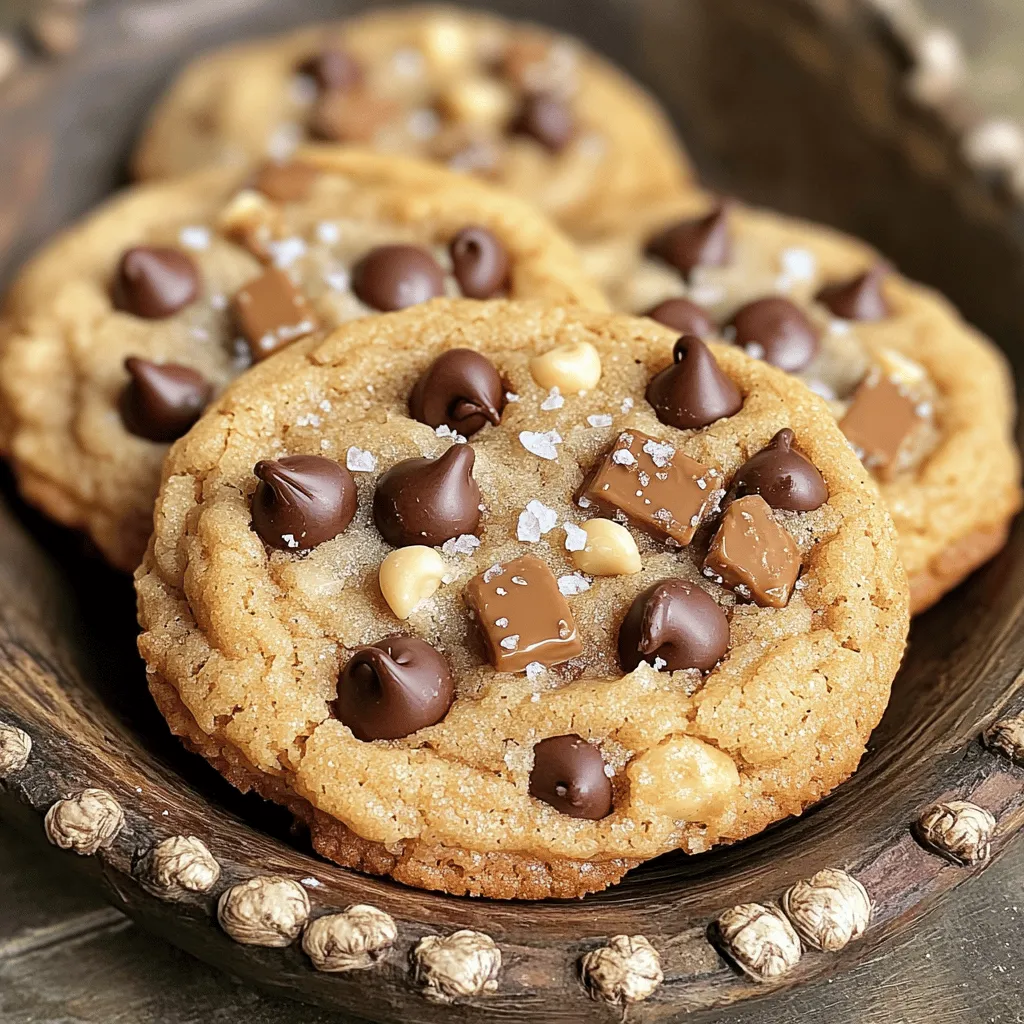 - 1 cup unsalted butter - 1 cup brown sugar, packed - 1/2 cup granulated sugar - 2 large eggs - 2 teaspoons vanilla extract - 3 cups all-purpose flour - 1 teaspoon baking soda - 1/2 teaspoon sea salt - 1 cup semi-sweet chocolate chips - 1 cup toffee bits You can use margarine instead of butter for a dairy-free option. If you want less sugar, try using coconut sugar instead of brown sugar. For the chocolate, dark chocolate works well if you prefer a richer taste. If you need gluten-free cookies, you can use a gluten-free flour blend. Just make sure it includes xanthan gum for the right texture. Adjust the amount slightly as gluten-free flour can vary in density. To prepare brown butter, start by melting the unsalted butter in a medium saucepan over medium heat. Stir it constantly. This keeps it from burning. Watch closely as it begins to foam. After a few minutes, the butter will turn golden brown. You will notice a nutty aroma filling the air. This usually takes about 5 to 7 minutes. Once you see the color change, remove it from the heat. Let it cool slightly before using it in your dough. In a large mixing bowl, add the brown sugar and granulated sugar. Pour in the cooled brown butter. Mix these ingredients together until creamy. Then, crack in the two large eggs, one at a time. Be sure to mix well after each egg. Next, stir in the vanilla extract. In a separate bowl, whisk together the all-purpose flour, baking soda, and sea salt. Gradually add this dry mixture to the wet ingredients. Stir until just combined. Finally, fold in the semi-sweet chocolate chips and toffee bits. Make sure the chocolate and toffee are evenly mixed into the dough. Chilling the dough is a key step. Cover the bowl with plastic wrap and place it in the fridge. Chill for at least 30 minutes to 1 hour. This helps the flavors blend and improves the cookie texture. When ready to bake, preheat your oven to 350°F (175°C). Line a baking sheet with parchment paper. Use a cookie scoop or tablespoon to drop rounded balls of dough onto the sheet. Space them about 2 inches apart. Bake the cookies for 10 to 12 minutes. The edges should be golden brown, while the centers stay soft. After baking, let them cool for 5 minutes on the baking sheet. Then, transfer them to a wire rack to cool completely. When making these cookies, avoid overmixing. If you mix too much, your cookies may turn out tough. Mix just until the flour blends in. This keeps the cookies soft and chewy. Another key point is ensuring the right cookie texture. If your dough is too dry, cookies will not spread. Always check the consistency. It should be slightly sticky but not too wet. You can add spices like cinnamon or nutmeg for a warm touch. They give cookies a cozy flavor. If you like crunch, consider adding chopped nuts like pecans or walnuts. They pair well with chocolate and toffee. For chocolate, use semi-sweet chips for a classic taste. Dark chocolate offers a deeper flavor. You can even mix both for a fun twist. Try different types to find your favorite blend. To present your cookies, stack them in a clear jar. Tie a ribbon around the jar for a lovely gift. Serve on a colorful plate to make them pop. A sprinkle of sea salt on top adds a nice touch. It enhances the sweet and salty contrast. This simple step makes your cookies look gourmet and inviting. {{image_2}} You can choose different types of chocolate for your cookies. Semi-sweet chocolate chips give a rich flavor. Dark chocolate adds a bold taste and less sweetness. If you prefer, milk chocolate brings a creamy, sweet touch. For a fun twist, try white chocolate chips. They add a nice contrast to the brown butter and toffee. Adding nuts can change the texture and flavor. Chopped pecans or walnuts work great. You can also add dried fruit, like cranberries or cherries, for a sweet and chewy bite. If you're feeling adventurous, try different toffee flavors, like chocolate-covered toffee bits. For seasonal fun, add pumpkin spice in the fall. This gives your cookies a warm, cozy flavor. To make these cookies vegan, swap out the butter for coconut oil. Use flax eggs instead of regular eggs. Mix one tablespoon of ground flaxseed with three tablespoons of water. Let it sit for five minutes to thicken. For dairy-free chocolate, look for dairy-free chocolate chips. This way, everyone can enjoy these tasty cookies! To keep your Brown Butter Toffee Chocolate Chip Cookies fresh, choose the right storage method. The best way is to store them in an airtight container. This helps keep the cookies soft and chewy. If you don’t have an airtight container, a zip-top bag works well too. Make sure to press out all the air before sealing it. For added freshness, place a slice of bread in the container. The bread helps absorb moisture and keeps cookies soft. You can freeze both the dough and baked cookies. Here’s how: 1. For Dough: Scoop the dough into balls. Place them on a baking sheet and freeze until solid. This takes about an hour. Once frozen, transfer the dough balls to a zip-top bag. Label the bag with the date. 2. For Baked Cookies: Let the cookies cool completely. Then, layer them in an airtight container with parchment paper between each layer. Close the container tightly. Thawing and Baking from Frozen: - For frozen dough, bake directly from the freezer. Just add a minute or two to the baking time. - For baked cookies, let them thaw at room temperature for about 30 minutes before enjoying. At room temperature, these cookies stay fresh for about 5 days. Make sure to keep them in an airtight container. If you refrigerate them, they can last up to 2 weeks. However, the cookies might lose some softness in the fridge, so enjoy them at room temp for the best taste! Brown butter can have a strong flavor if you cook it too long. If the taste is too nutty or burnt, try using less heat next time. Stir it constantly and watch for a golden color. This helps keep the flavor balanced. You can mix in a bit of regular b