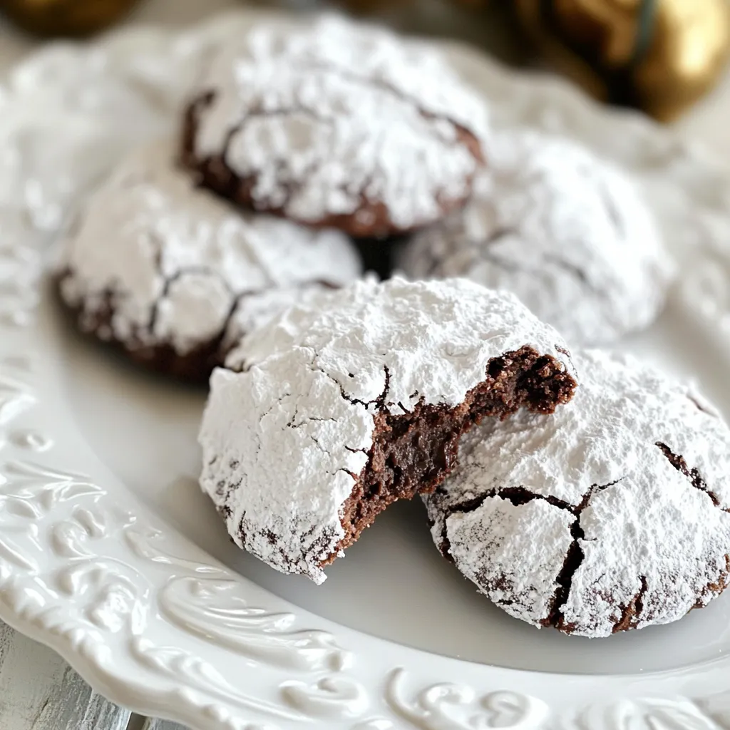 Deliciously rich and chewy brownie crinkle cookies dusted with powdered sugar.