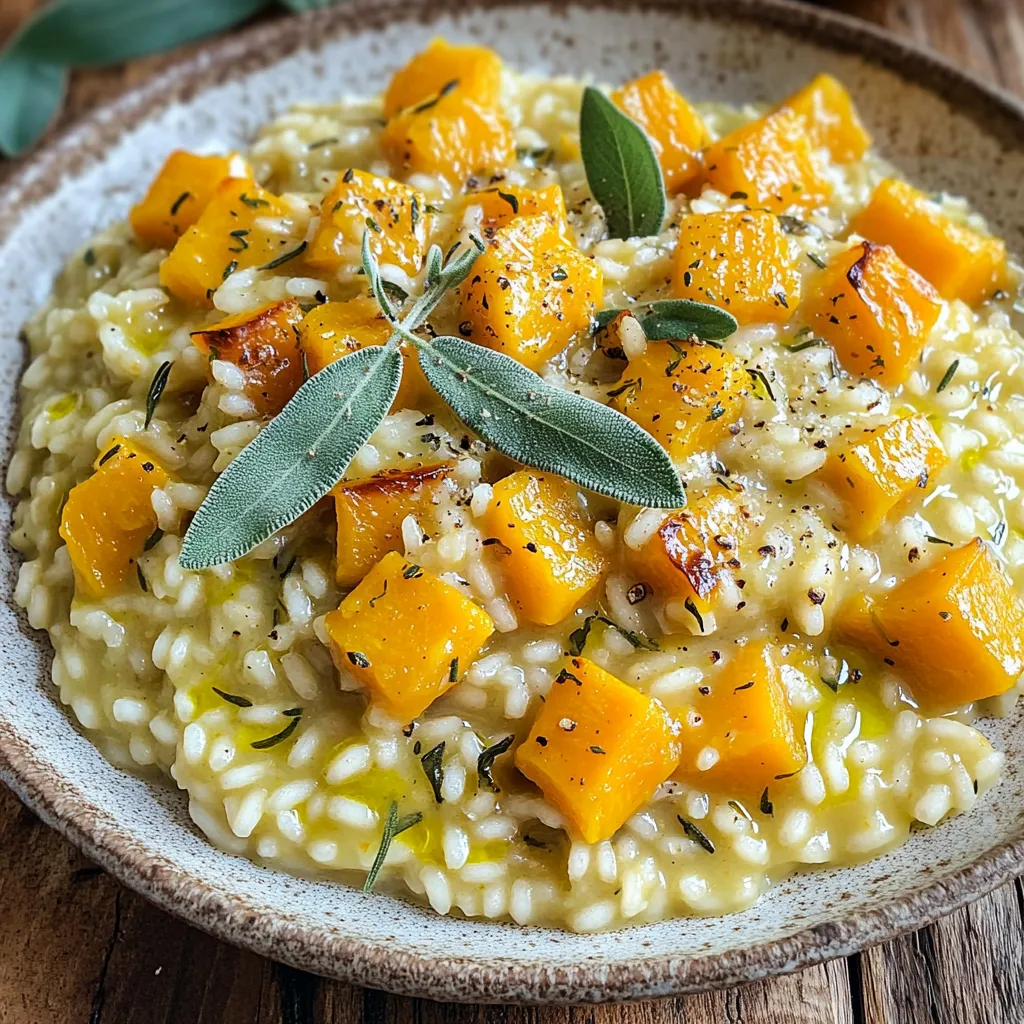 - 1 medium butternut squash, peeled and diced into small cubes - 1 tablespoon olive oil - 1 tablespoon unsalted butter - 1 small onion, finely chopped - 2 cloves garlic, minced - 1 ½ cups Arborio rice - 5 cups vegetable broth, warmed - 1 cup grated Parmesan cheese - 1 tablespoon fresh sage, chopped (plus extra for garnish) - Salt and pepper to taste - A sprinkle of nutmeg for garnish - Large skillet or heavy-bottomed pot - Wooden spoon or spatula - Ladle for adding broth - Cutting board and knife - Grater for cheese First, gather your ingredients. Peel and dice the butternut squash into small cubes. Heat a large skillet over medium heat. Add one tablespoon of olive oil and half of the unsalted butter. Once hot, add the diced squash. Sauté for about five to seven minutes. You want it to soften and caramelize lightly. After that, remove the squash from the pan and set it aside. In the same pot, add the chopped onion and minced garlic. Sauté for three to four minutes until the onion turns translucent. Next, stir in one and a half cups of Arborio rice. Cook it for about one minute. The rice should become slightly translucent. Now, it's time to add the warmed vegetable broth. Use a ladle to add broth, one ladle at a time. Stir often and wait until most of the liquid absorbs before adding more. This will take around 18 to 20 minutes. The rice should be creamy and just tender. Once the rice is cooked, fold in the sautéed butternut squash. Add the remaining butter, chopped sage, and grated Parmesan cheese. Stir everything well until it becomes creamy and heated through. Season with salt and pepper to taste. If you want, add a sprinkle of nutmeg for extra flavor. Serve the risotto warm, garnished with more chopped sage on top. To get creamy risotto, you must stir often. Stirring helps release the starch from the rice. This starch makes the risotto thick and creamy. Use warm broth, not cold. Cold broth will cool the rice and slow down cooking. Keep adding broth one ladle at a time. Wait until most of the liquid is gone before adding more. This takes patience but is worth it! Use Arborio rice for this dish. Arborio rice has a high starch content. This is key for a creamy texture. Other short-grain rice varieties, like Carnaroli or Vialone Nano, also work well. Avoid long-grain rice, as it won’t give you the same creaminess. Stick with short grains for the best results. You can change the flavors in this risotto. Try adding different herbs like thyme or rosemary. For a spicy kick, add red pepper flakes. You can also mix in other vegetables, like peas or mushrooms. If you want a richer taste, swap the vegetable broth for chicken broth. A sprinkle of nutmeg adds warmth and depth. Experiment to find your favorite mix! {{image_2}} You can boost your risotto by adding protein. Chicken or shrimp work well. Cook the protein in the same pot before you start making the risotto. For chicken, use small pieces and sauté them until golden. For shrimp, add them after the rice is nearly done. They will cook quickly and add a nice touch. To make this dish vegan, swap the butter and cheese. Use olive oil instead of butter for cooking. For the cheese, try nutritional yeast. It adds a cheesy taste without dairy. You can also use a vegan cream to keep it rich and creamy. Feel free to play with seasonal ingredients. In the fall, add roasted mushrooms or kale. In the spring, fresh peas or asparagus add a nice crunch. You can also mix in herbs like thyme or rosemary to change the flavor profile. After you make butternut squash sage risotto, let it cool. Store it in an airtight container. Keep it in the fridge for up to three days. Make sure to cover it tightly to keep the flavors fresh. If you plan to eat it soon, this method works great. If you want to store your risotto longer, freezing is a good option. Place it in a freezer-safe container. It can last up to three months in the freezer. When you're ready to eat, thaw it overnight in the fridge. Reheat it slowly on the stove. Add a splash of broth to help it gain creaminess again. For the best taste, enjoy risotto fresh. But if you have leftovers, follow these tips. Divide it into smaller portions for easy reheating. Use glass containers for a safe and easy way to store. Label them with the date. This helps you remember when you made it. Enjoy the creamy comfort of your butternut squash sage risotto later! Yes, you can use other squashes. Acorn and kabocha squashes work well. They have a sweet taste, like butternut squash. Just make sure to peel and cube them. Cook them the same way in the recipe. Each squash gives a different flavor and texture. Experiment and see what you like best. You can use other types of rice, like Carnaroli or Vialone Nano. They have a creamy texture, too. If you want to try a non-rice option, use quinoa or barley. Just know that cooking times may change. Always taste as you go, so the dish stays creamy. This risotto pairs well with a green salad. A simple arugula or spinach salad works great. You could also serve it with roasted vegetables or grilled chicken. For a cozy meal, add crusty bread or garlic bread. Each option adds flavor and makes the meal complete. Butternut squash risotto is a simple yet tasty dish. We explored key ingredients, from the main to optional ones, and outlined the essential equipment you need. I provided step-by-step instructions for cooking and tips for a creamy finish. Variations let you add protein or adapt the dish for vegan diets. I shared storage methods to keep it fresh and answered common questions. Enjoy creating this dish; it offers warmth and comfort with every bite. Now, go ahead and make your own unique risotto!