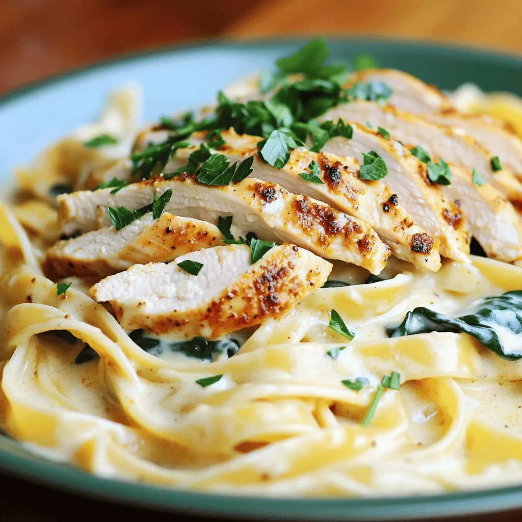Cajun Chicken Alfredo Pasta is a rich dish that combines flavors. It features fettuccine pasta, tender chicken, and a creamy sauce. The Cajun seasoning adds a spicy kick. The dish includes garlic, heavy cream, Parmesan cheese, and fresh spinach. Each bite offers a mix of creamy and spicy tastes that makes it special.