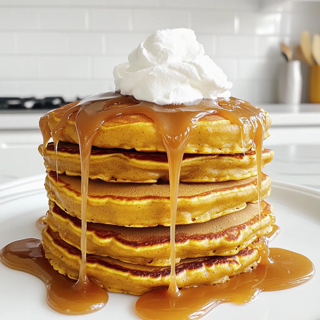 - 1 cup all-purpose flour - 1 tablespoon baking powder - 1 teaspoon pumpkin pie spice - 1/2 teaspoon salt - 1 cup pumpkin puree (canned or fresh) - 1/2 cup milk - 1/4 cup brown sugar - 1 large egg - 2 tablespoons melted butter - 1 teaspoon vanilla extract - 1/2 cup caramel sauce (store-bought or homemade) - Whipped cream for serving (optional) Gathering the right ingredients is key. I love using fresh pumpkin puree, but canned works too. It’s easier and still gives great flavor. For the dry mix, make sure you measure the flour well. Too much flour makes the pancakes dense. The pumpkin pie spice adds warmth. If you want a twist, try adding a bit of cinnamon or nutmeg. Salt brings out the flavors, so don’t skip it! For the wet mix, I use brown sugar for a deeper, richer taste. The melted butter gives the pancakes a nice texture. Always use a large egg; it helps bind everything. Finally, caramel sauce is a must. You can make your own or buy it. Whipped cream on top is optional, but I say go for it! It makes each bite extra special. Mixing dry ingredients Start by gathering your dry ingredients. In a large bowl, whisk together 1 cup of all-purpose flour, 1 tablespoon of baking powder, 1 teaspoon of pumpkin pie spice, and 1/2 teaspoon of salt. This mix gives your pancakes warmth and flavor. Combining wet ingredients In another bowl, mix 1 cup of pumpkin puree, 1/2 cup of milk, 1/4 cup of brown sugar, 1 large egg, 2 tablespoons of melted butter, and 1 teaspoon of vanilla extract. Stir until everything is smooth. This mixture adds sweetness and richness. Folding wet and dry mixtures together Now, pour the wet mixture into the dry ingredients. Gently fold them together until just combined. Do not overmix! Small lumps are okay. This keeps your pancakes fluffy. Heating the skillet Heat a non-stick skillet or griddle over medium heat. Lightly grease it with butter or oil. This step helps prevent sticking and gives a nice golden color. Pouring the batter Once the skillet is hot, pour about 1/4 cup of batter for each pancake. Be careful not to crowd the pan. This allows each pancake to cook evenly. Cooking time and flipping technique Cook the pancakes until bubbles form on the surface, which takes about 2-3 minutes. Flip them gently and cook for another 1-2 minutes until golden brown. Keep an eye on them to avoid burning. Stacking pancakes To serve, stack 2-3 pancakes on a plate. This looks great and makes for a hearty breakfast. Adding caramel drizzle and whipped cream Drizzle the top with 1/2 cup of caramel sauce. Add whipped cream on top if you like. This adds sweetness and makes it look fancy. Enjoy your tasty fall treat! To make the best pancakes, avoid overmixing. When you mix wet and dry ingredients, stir just until combined. Small lumps are fine. Overmixing makes pancakes tough. Check for doneness by looking for bubbles on the pancake surface. When you see bubbles, it’s time to flip. Cook the other side until golden brown. This usually takes 1-2 minutes. You can use homemade or store-bought caramel sauce. Homemade sauce allows for more flavor control. If you choose store-bought, look for high-quality brands. They often taste better. Warm the caramel sauce in a microwave-safe bowl. Heat in short bursts of 15 seconds. Stir in between, until it’s pourable. This makes it easy to drizzle over pancakes. To boost flavor, consider adding a pinch of nutmeg or cinnamon. A splash of maple extract can also enhance the taste. These spices complement pumpkin well. Pair your pancakes with crispy bacon or sausages for a savory touch. A warm apple cider or a spiced latte makes a great drink choice. Enjoy the flavors of fall! {{image_2}} To make your pancakes a bit healthier, consider these swaps: - Whole wheat flour: Replace all-purpose flour with whole wheat flour for added fiber. - Dairy-free options: Use almond milk or soy milk instead of regular milk. This keeps the pancakes light and dairy-free. Adding new flavors can make your pancakes exciting: - Chocolate chips or nuts: Sprinkle chocolate chips or chopped nuts into the batter for extra crunch and sweetness. - Incorporating fruit or other spices: Try adding mashed bananas or blueberries. You can also mix in cinnamon or nutmeg for a warm spice kick. You can enjoy pumpkin pancakes all year long! - Holiday-themed variations: For special occasions, add crushed candy canes or a splash of eggnog to the batter. - Making pumpkin pancakes year-round: When pumpkins aren’t in season, use canned pumpkin puree. It’s easy and tasty any month! To keep your pancakes fresh, store them in an airtight container. Place parchment paper between layers to prevent sticking. Pancakes can last in the fridge for about three days. If you want to keep them longer, freeze them. Just wrap each pancake in plastic wrap before putting them in a freezer bag. They can last up to three months in the freezer. For the best texture, reheat pancakes in a toaster. Set it to a low setting to warm them without drying them out. You can also use a microwave, but heat them in short bursts. Place a damp paper towel on top to keep moisture. Another way is to use a skillet over low heat. This method helps maintain a nice, fluffy feel. Make a big batch of pancakes ahead of time. You can cook them on the weekend and store them for busy mornings. For freezer-friendly preparation, let the pancakes cool completely first. Then, stack them with parchment paper in between. This way, you can grab just what you need. When you want a quick meal, just reheat and drizzle with caramel sauce. To make pancakes fluffier, use a few simple tricks: - Separate the egg. Whip the egg white until fluffy. - Fold the whipped egg white into the batter last. - Use fresh baking powder. Check the date on the can. - Don’t overmix your batter. Leave small lumps for the best rise. These methods help create air pockets, making your pancakes light and fluffy. Yes, you can easily make these pancakes vegan! Here are some gr