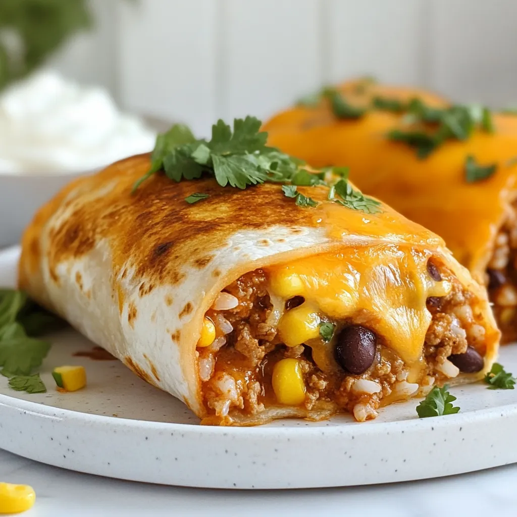 - 1 pound ground chicken - 1 cup cooked white rice - 1 cup shredded cheddar cheese - 1/2 cup black beans, rinsed and drained - 1/2 cup corn kernels (fresh or frozen) - 1 small onion, diced - 2 cloves garlic, minced - 1 teaspoon chili powder - 1 teaspoon cumin - 1/2 teaspoon smoked paprika - Salt and pepper to taste - 4 large flour tortillas - 1/4 cup fresh cilantro, chopped (for garnish) - Sour cream and salsa (for serving) When you gather these ingredients, think about how they will come together. Ground chicken is lean and cooks quickly. White rice adds fullness. Cheddar cheese brings a rich, gooey quality. The black beans and corn provide texture and fiber. The onion and garlic? They add depth and flavor. Don't forget the spices. Chili powder, cumin, and smoked paprika create warmth and a hint of smokiness. You can adjust these to fit your taste. For the tortillas, look for large flour ones. They hold everything well. Finally, garnishes like cilantro and creamy sour cream complete your meal. {{ingredient_image_1}} Start by heating a large skillet over medium heat. Add 1 pound of ground chicken. Cook it for about 5 to 7 minutes. Break it apart with a spatula. Cook until it's no longer pink. Next, add 1 small diced onion and 2 cloves of minced garlic. Sauté these for about 3 to 4 minutes. You want the onions to turn translucent. This step adds a great flavor base. Now, it’s time to spice things up! Stir in 1 teaspoon of chili powder, 1 teaspoon of cumin, and 1/2 teaspoon of smoked paprika. Add salt and pepper to taste. Mix everything well to coat the chicken. Then, add in 1 cup of cooked white rice, 1/2 cup of black beans (rinsed and drained), and 1/2 cup of corn kernels. Stir all these together and cook for an additional 3 to 4 minutes. This helps to warm everything through. Remove the skillet from heat and mix in 3/4 cup of shredded cheddar cheese. It should melt nicely into the filling. Take a large flour tortilla and lay it flat on a clean surface. Spoon a good amount of the chicken and rice filling down the middle. Make sure you leave space at the edges. Sprinkle a little extra shredded cheese over the filling. Now, fold in the sides of the tortilla. Roll it tightly from the bottom to enclose the filling. Repeat this with the rest of the tortillas and filling. If you want your burritos crispy, here’s what to do! Heat a non-stick skillet over medium heat. Place the burritos seam-side down in the skillet. Cook for 2 to 3 minutes on each side. You want them to turn golden and crispy. This extra step adds a delightful crunch. To ensure your ground chicken is fully cooked, use a meat thermometer. The chicken should reach 165°F. This guarantees it's safe to eat. I also suggest breaking it up well while it cooks. This helps the meat cook evenly and prevents clumping. To achieve the right texture, cook the chicken on medium heat. This way, it won't dry out. Adding the onions and garlic early gives a great flavor base. Cook them until they are soft and translucent. This adds depth to your filling. For perfect cheese melting, add it to the filling when it’s hot. Remove the skillet from heat and stir in about 3/4 cup of cheese. The heat helps the cheese melt smoothly into the mixture. You can use different types of cheese too. Cheddar is great, but Monterey Jack or pepper jack can add a fun twist. Experimenting with flavors can make your burritos unique. Pair your burritos with sour cream and salsa for extra flavor. The cool cream balances the warm filling well. You can also add guacamole for a creamy texture. For additional garnishes, try fresh cilantro or a squeeze of lime. These add freshness and brighten up the meal. You might also sprinkle some chopped green onions for a nice crunch. Pro Tips Use Fresh Ingredients: Fresh vegetables and herbs can enhance the flavor of your burritos significantly. Opt for fresh cilantro and corn when possible for the best taste. Customize Your Spice Level: Adjust the amount of chili powder and cumin according to your heat preference. You can also add jalapeños for an extra kick! Make It Ahead: Prepare the filling in advance and store it in the refrigerator. You can quickly assemble and cook the burritos when you're ready to eat. Experiment with Cheese: While cheddar is delicious, try using different cheeses like Monterey Jack or pepper jack for a unique flavor profile in your burritos. {{image_2}} You can easily switch out the ground chicken for other proteins. Ground turkey or beef works well if you prefer. For a lighter option, try shredded rotisserie chicken. If you want a vegetarian dish, use lentils or black beans instead of chicken. You can also use crumbled tofu or tempeh. These swaps keep the burrito tasty and filling. To change the taste, try adding spices like oregano or cayenne pepper. These spices add warmth and depth to your filling. You can also mix in some taco seasoning for a fun twist. Switching up the beans or veggies can also change the flavor profile. Use pinto beans or kidney beans. Try adding bell peppers, zucchini, or spinach for added nutrition and taste. Burritos can be mini or large. Mini burritos work great for snacking or parties. You can also make burrito bowls. Just layer the filling in a bowl and top it with cheese and salsa. Consider using whole grain or gluten-free tortillas. Whole grain adds fiber, while gluten-free options cater to those with dietary needs. Both choices keep your meal healthy and enjoyable. To keep your cheesy ground chicken and rice burritos fresh, place them in an airtight container. This helps prevent moisture loss and keeps the burritos tasty. If you have leftovers, store them in the fridge. They stay good for up to four days. Make sure to let them cool before sealing. If you want to save your burritos for later, freezing is a great option. Wrap each burrito tightly in plastic wrap. Then, place them in a freezer-safe bag or a container. They can last in the freezer for up to three months. Whe