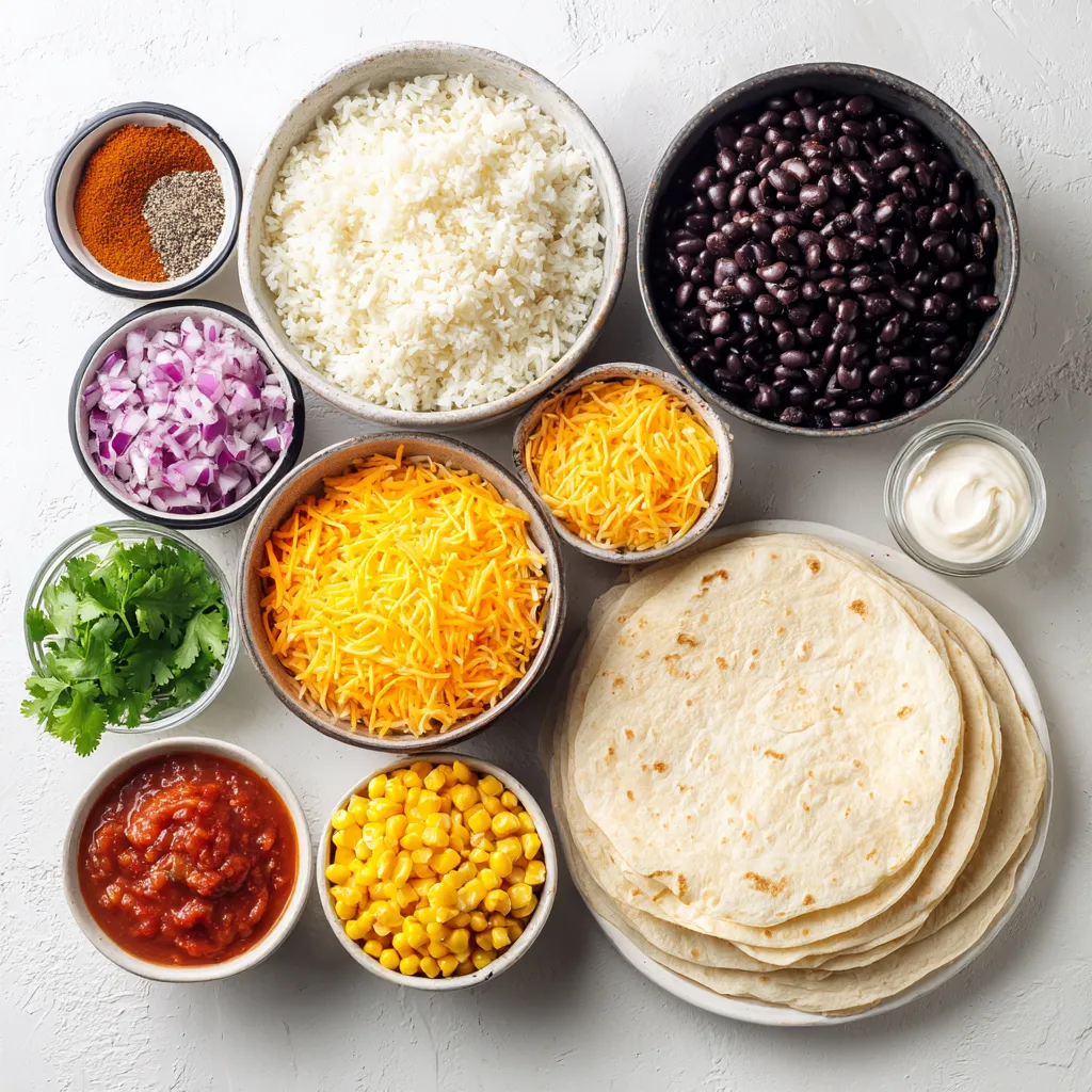 When you gather these ingredients, think about how they will come together. Ground chicken is lean and cooks quickly. White rice adds fullness. Cheddar cheese brings a rich, gooey quality. The black beans and corn provide texture and fiber.