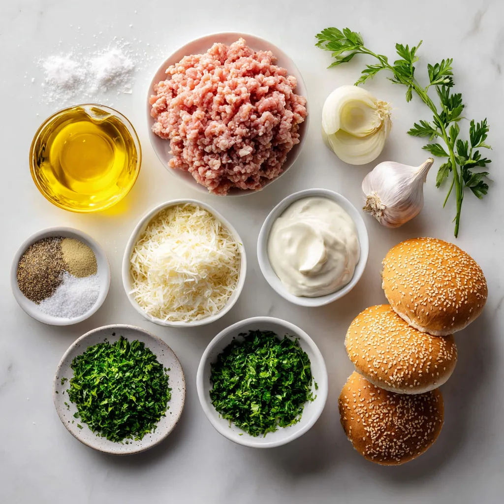 For this Chicken Alfredo Sloppy Joe recipe, you need simple yet tasty ingredients. Ground chicken is the star here. It cooks quickly and is juicy. Olive oil adds richness and helps with cooking. The onion and garlic bring depth to the flavor.