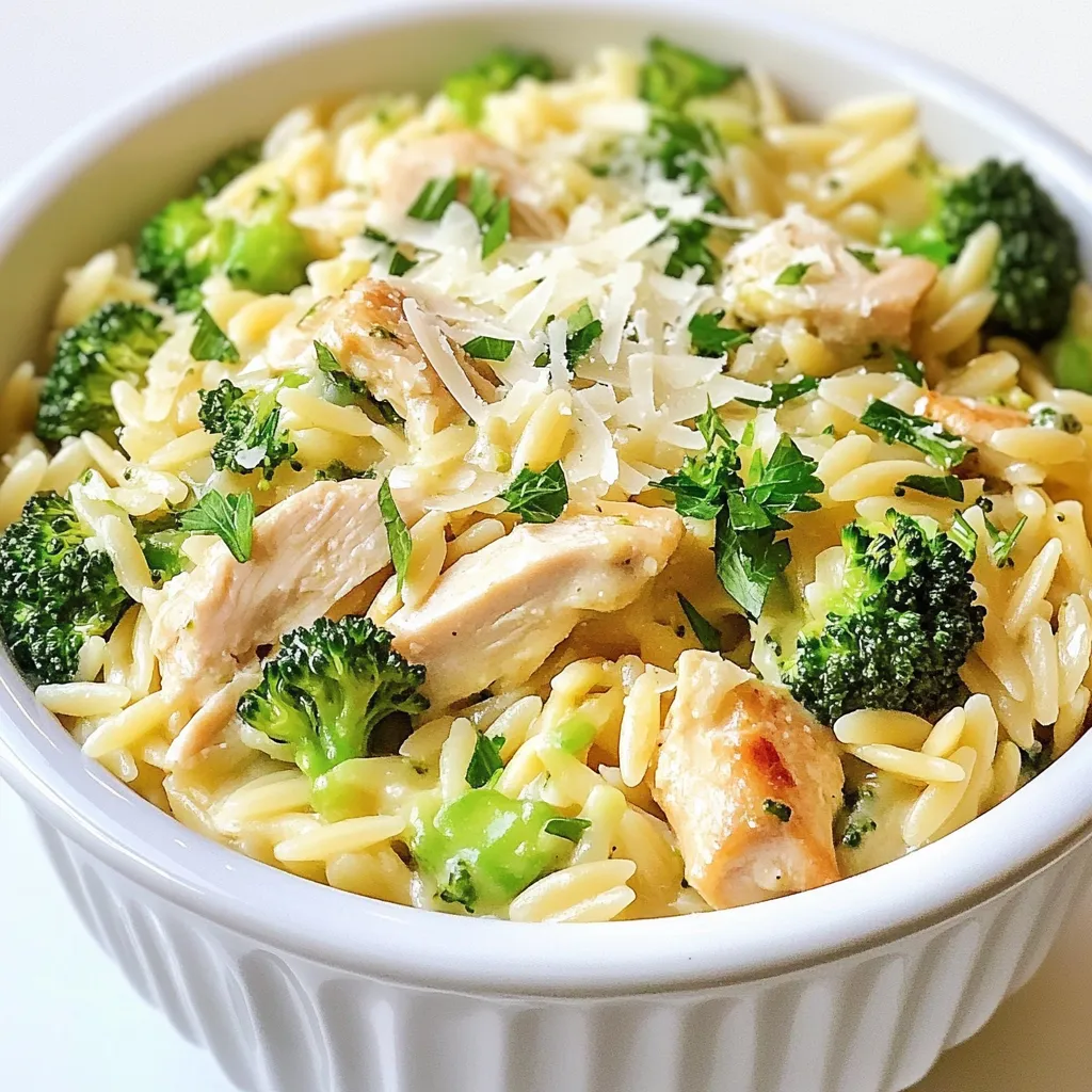 To make your Chicken Broccoli Orzo creamier, mix in more Parmesan cheese. You can also add a splash of heavy cream or milk. For extra flavor, try adding some red pepper flakes. A dash of soy sauce can also enhance the taste. Fresh herbs like basil or thyme give a bright touch too.