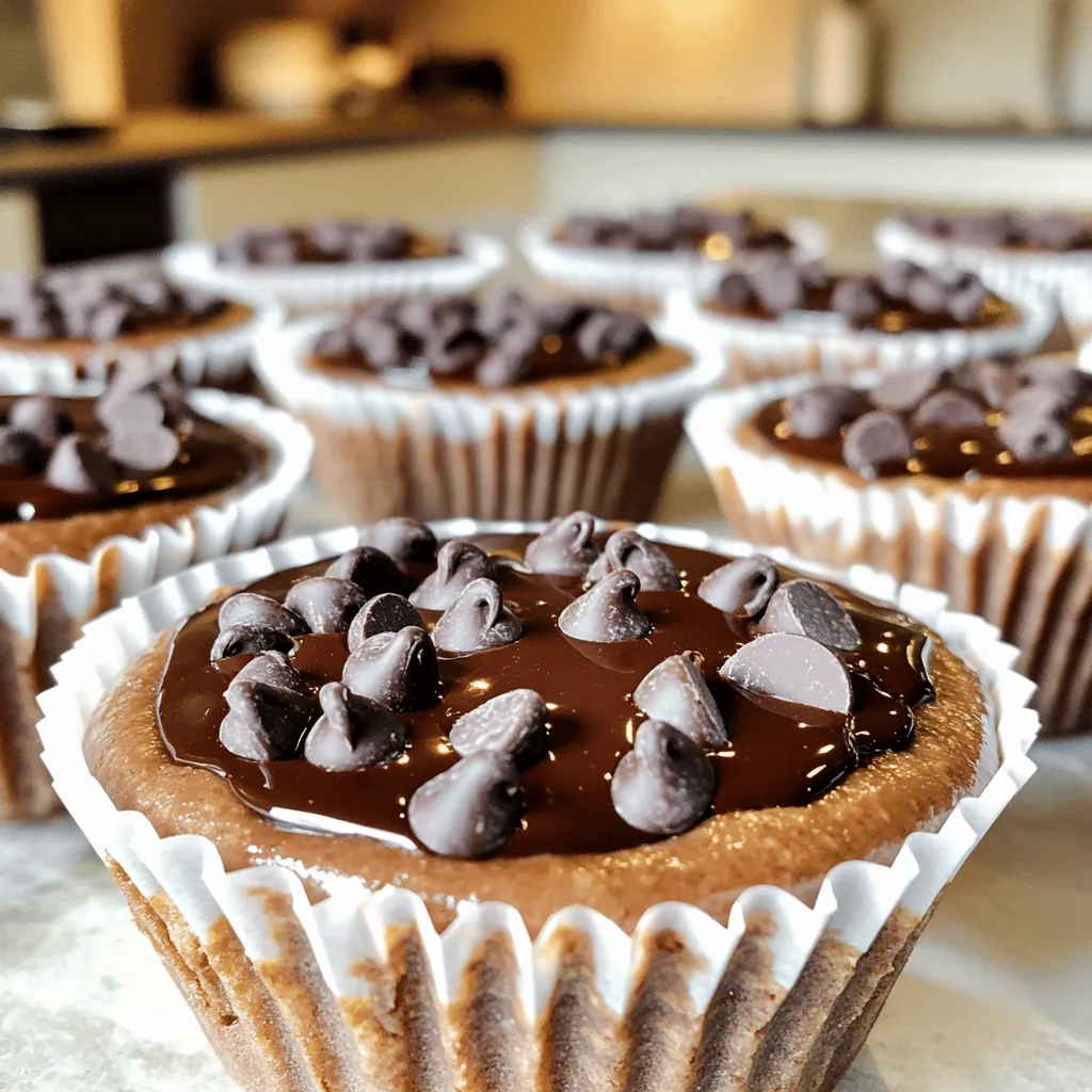 Now, grab a muffin tin. You can line it with paper liners or grease it lightly with coconut oil. Use a spoon or cookie scoop to divide the mixture into the muffin tins. Press down gently to form cups. This step shapes them nicely. Once you fill all the cups, sprinkle dark chocolate chips on top. Press them into the mixture lightly. This adds a sweet touch to each cup.