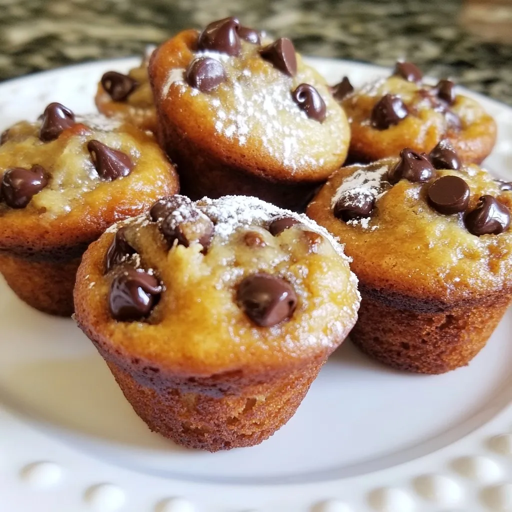 To make these tasty muffins, gather these key ingredients: - 3 ripe bananas, mashed - 1/3 cup melted coconut oil - 1/2 cup brown sugar, packed - 1 large egg, beaten - 1 teaspoon vanilla extract - 1 teaspoon baking soda - Pinch of salt - 1 cup all-purpose flour - 1/2 cup dark chocolate chips - 1/2 cup chopped walnuts (optional) Each ingredient plays a vital role in creating a soft, moist muffin with rich flavors. The bananas bring natural sweetness, while the chocolate chips add a delightful treat. You can swap some ingredients for different tastes or needs. If you want a lighter muffin, use applesauce instead of coconut oil. You can replace brown sugar with white sugar or honey. For a nut-free version, skip the walnuts. If you don’t have dark chocolate, milk chocolate works just as well. Ripe bananas are key for this recipe. They must be very soft and spotted. Ripe bananas offer more natural sugars, making muffins sweeter. They also blend easily and provide moisture. Using unripe bananas can lead to dry muffins. Always choose bananas that you would eat as a snack. The tastier the banana, the better your muffins will be! {{ingredient_image_1}} Start by preheating your oven to 350°F (175°C). This ensures even baking for your muffins. While the oven heats, prepare your muffin tin. Line it with paper liners or lightly grease each cup with cooking spray. This step helps prevent sticking and makes for easy cleanup. In a mixing bowl, mash three ripe bananas with a fork until smooth. Add 1/3 cup of melted coconut oil to the bananas. Mix them well until blended. Next, stir in 1/2 cup of packed brown sugar. Follow this with one beaten large egg and 1 teaspoon of vanilla extract. Mix until the mixture is creamy and well combined. Now, it's time for the dry ingredients. Sprinkle 1 teaspoon of baking soda and a pinch of salt over the wet mixture. Stir gently to combine. Then, gradually add 1 cup of all-purpose flour into the bowl. Mix carefully until just combined. Remember, overmixing can make your muffins tough, so stop as soon as you see no dry flour. Once your batter is ready, fold in 1/2 cup of dark chocolate chips and, if you like, 1/2 cup of chopped walnuts. This adds flavor and texture. Spoon the batter into the prepared muffin tin, filling each cup about 3/4 full. Bake in your preheated oven for 18-20 minutes. To check for doneness, insert a toothpick into the center of a muffin. If it comes out clean, they’re ready! After baking, cool the muffins in the tin for 5 minutes. Then, transfer them to a wire rack to cool completely. Enjoy your mouthwatering creations! Mixing is key, but too much can ruin your muffins. When you add flour, stir gently. Stop when you see some dry flour. The batter should look a bit lumpy. This helps keep your muffins soft and fluffy. Overmixing makes them tough and dry. To keep your muffins fresh, let them cool first. Place them in a sealed bag or container. You can store them at room temperature for two days. If you want them to last longer, freeze them. Just wrap each muffin in plastic and put them in a freezer bag. They will stay good for up to three months. You can mix things up with fun additions. Try using different types of chocolate, like milk or white chocolate. Dried fruits, like cranberries or raisins, also work well. If you want a nutty crunch, add more walnuts or even pecans. For serving, dust the muffins with powdered sugar. They look great this way! Enjoy them warm with a little butter on top. It adds a nice, rich flavor. Pro Tips Use Overripe Bananas: The riper your bananas, the sweeter and more flavorful your muffins will be. Look for bananas that are heavily speckled or even brown for the best results. Don’t Overmix: When combining the flour with the wet ingredients, mix just until combined. Overmixing can lead to dense and tough muffins. Customize Add-ins: Feel free to experiment with different add-ins like dried fruits, nuts, or even spices like cinnamon to add a unique twist to your muffins. Check for Doneness: To ensure even baking, check the muffins a few minutes before the suggested baking time by inserting a toothpick; they are done when it comes out clean. {{image_2}} You can switch up the chocolate in these muffins. Dark chocolate adds richness, but you can try milk chocolate or white chocolate. Each type brings a unique taste. Mix and match to find your favorite blend. If you love a sweeter treat, milk chocolate is perfect. For a deeper flavor, use bittersweet chocolate. You can even add chocolate chunks for a fun texture. Making these muffins gluten-free is simple. Just swap all-purpose flour for a gluten-free blend. Look for a mix that works well for baking. Ensure it includes xanthan gum for the right texture. Follow the same steps in the main recipe, and you’ll have tasty gluten-free muffins. They will be just as soft and delicious! You can add more flavors by mixing in fruits and nuts. Chopped nuts like walnuts or pecans give a nice crunch. If you want fruit, try blueberries or diced strawberries. Add about half a cup of your chosen mix-ins. Fold them into the batter gently to avoid overmixing. These additions make the muffins even more exciting and flavorful! To keep your muffins fresh, place them in an airtight container. This helps maintain moisture. You can store them at room temperature for up to three days. If you want them to last longer, consider refrigerating them. However, they may become a bit dry in the fridge. Freezing muffins is an excellent way to save them for later. First, let the muffins cool completely. Then, wrap each one tightly in plastic wrap. Place the wrapped muffins in a freezer-safe bag or container. They can last up to three months in the freezer. When you're ready to enjoy, simply thaw them at room temperature. To enjoy your muffins warm, you can reheat them easily. For the best results, use an oven. Preheat the oven to 350°F (175°C). Wrap the muffins in aluminum foil to prevent them from dryin