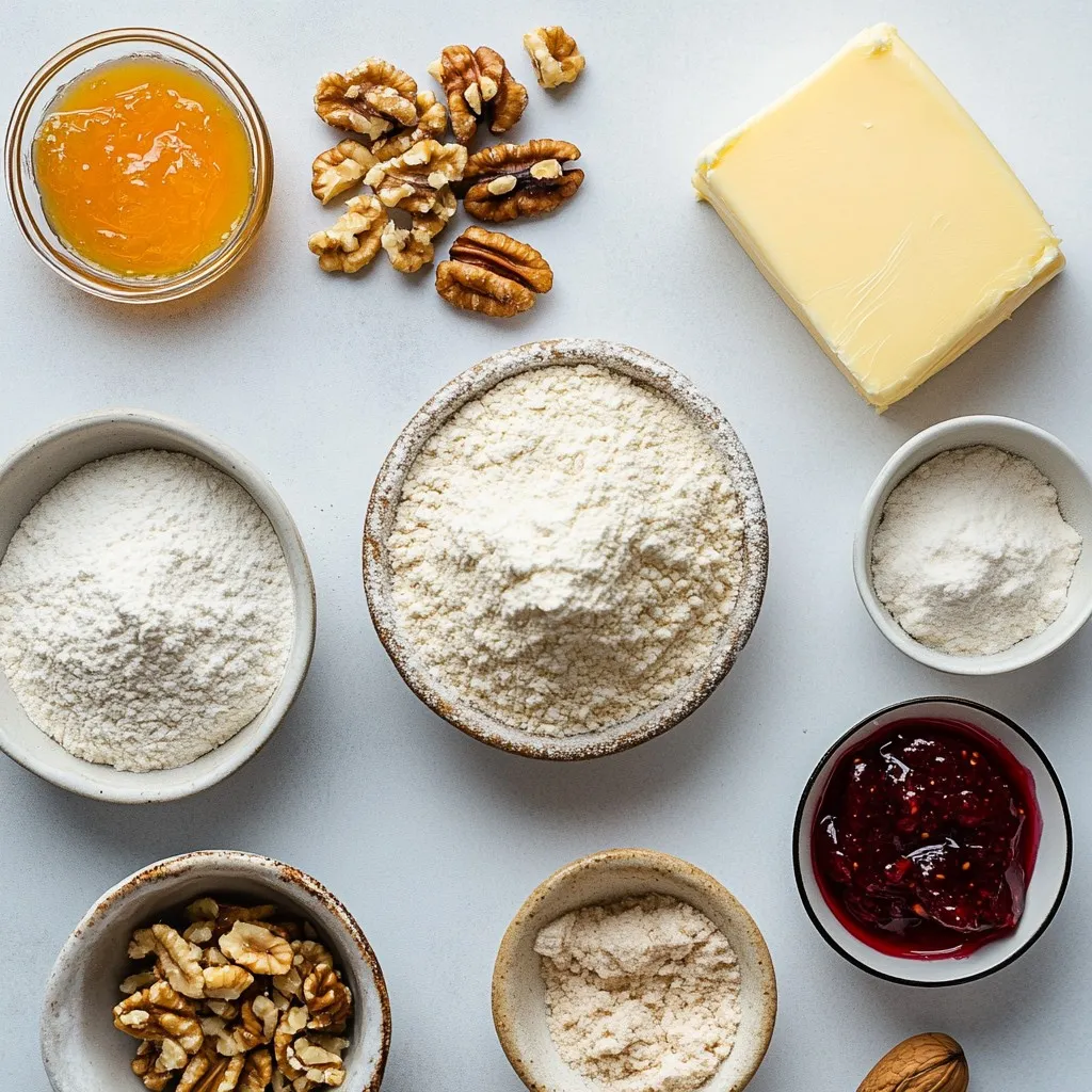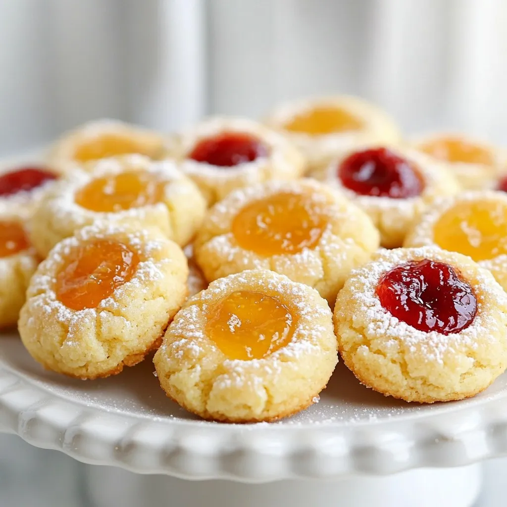 To make Christmas thumbprint cookies, you need a few simple ingredients. Here’s what you’ll need: - 1 cup unsalted butter, softened - 1/2 cup granulated sugar - 1/2 cup brown sugar, packed - 1 teaspoon vanilla extract - 2 cups all-purpose flour - 1/4 teaspoon salt - 1/4 teaspoon baking powder - 1/2 cup chopped nuts (optional: walnuts or pecans) - 1/2 cup assorted jams (apricot, raspberry, or strawberry) - 1/2 cup powdered sugar (for dusting) These ingredients come together to create a rich and buttery cookie. The thumbprint design holds your favorite jam, adding sweetness and color. I love using different jams for variety. Each jam brings its own unique flavor to the cookie. You can choose one or mix a few for a fun twist! Make sure your butter is softened. This helps it blend well with the sugars. If you add nuts, they add a nice crunch. Choose nuts that you enjoy. These cookies are not just tasty; they also look festive. Dusting with powdered sugar gives them a snowy look, perfect for the holidays. {{ingredient_image_1}} 1. Preheat your oven to 350°F (175°C). This ensures even baking. 2. In a large mixing bowl, cream together 1 cup of softened unsalted butter, 1/2 cup of granulated sugar, and 1/2 cup of packed brown sugar. Mix until fluffy. This step adds air and makes the cookies light. 3. Mix in 1 teaspoon of vanilla extract. This gives the cookies a warm flavor. 1. In another bowl, whisk together 2 cups of all-purpose flour, 1/4 teaspoon of salt, and 1/4 teaspoon of baking powder. This helps to distribute the leavening evenly. 2. Gradually incorporate the dry mixture into the wet ingredients. Mix until just combined. Be careful not to overmix; this keeps the cookies tender. 1. Using a teaspoon, scoop small amounts of dough. Roll them into balls about 1 inch in diameter. Place them on a baking sheet lined with parchment paper, spaced about 2 inches apart. 2. With your thumb or a small round utensil, create an indentation in the center of each cookie. This is where the jam will go. 3. Fill each indentation with a small amount of your chosen jam, like apricot, raspberry, or strawberry. Don't overfill; keep it neat. 4. Bake in the preheated oven for 12-15 minutes. The edges should be lightly golden. 5. Once baked, remove the cookies from the oven. Let them cool on the baking sheet for 5 minutes. Then transfer them to a wire rack to cool completely. - Ensure butter is softened for better mixing: Softened butter blends well with sugars. This gives your cookies a light and fluffy texture. Leave the butter out for about an hour before baking. - Best practices for creating even indentations: Use your thumb or the back of a small spoon to press into the dough gently. Make sure the indentations are not too deep, so the jam does not overflow. - Recommended jams for optimal flavor: Try using apricot, raspberry, or strawberry jams. Each brings a unique flavor that pairs well with the cookies. You can also mix them for fun surprises! - Dusting with powdered sugar for visual appeal: After baking, sprinkle powdered sugar on top of the cookies. This makes them look festive and adds a sweet touch. - Ideas for festive cookie platters: Arrange the cookies on a decorative platter. Add sprigs of holly or peppermint candies around them. This adds color and makes your cookies stand out! Pro Tips Chill the Dough: For a firmer dough that holds its shape better, refrigerate the dough for about 30 minutes before baking. Choose Quality Jam: Using high-quality, flavorful jams will enhance the overall taste of your cookies, so opt for gourmet varieties if possible. Even Indentations: Use the back of a measuring spoon to create uniform indentations in the dough for consistent baking and a neat appearance. Powdered Sugar Dusting: Dust the cookies with powdered sugar just before serving to maintain its fluffy appearance and prevent clumping. {{image_2}} You can switch up the jam in these cookies for fun flavors. Try mango, cherry, or even chocolate! Each jam brings a new taste that makes the cookies special. You can also go nut-free. If someone has a nut allergy, just leave out the nuts. The cookies will still be soft and tasty. If you need gluten-free cookies, you can use a flour blend. Many brands sell gluten-free flour that works great. For a vegan option, swap butter with coconut oil. You can also use flax eggs instead of regular eggs. Just mix 1 tablespoon of ground flaxseed with 2.5 tablespoons of water for each egg. These swaps keep the cookies delicious and friendly for everyone! To keep your Christmas thumbprint cookies fresh, follow these tips: - Cool Completely: Let the cookies cool fully on a wire rack. - Airtight Containers: Store them in a clean, airtight container. This keeps them moist and soft. - Layer with Parchment: If stacking, place parchment paper between layers. This prevents sticking. For the best taste, eat the cookies within a week. Freezing cookies is a great way to save some for later. Here’s how: - Freeze Dough: Scoop and shape the dough into balls. Place them on a baking sheet and freeze until solid. Then, transfer the balls to a freezer bag. - Thawing and Baking: When ready to bake, take the dough out of the freezer. Let it thaw in the fridge for a few hours. Preheat your oven and bake as usual. This way, you can enjoy fresh cookies any time! Can I make the dough ahead of time? Yes, you can make the dough ahead. Wrap it tightly and store it in the fridge. It stays fresh for up to three days. This way, you can bake when you want. Just let it sit at room temperature for 10-15 minutes before rolling. How can I prevent the cookies from spreading too much? To stop the cookies from spreading, chill the dough for 30 minutes. Cold dough helps keep the cookies thick. Also, ensure your oven is at the right temperature. An oven thermometer can help with this. What is the origin of thumbprint cookies? Thumbprint cookies date back to Europe. They are popular in many countries. The name comes