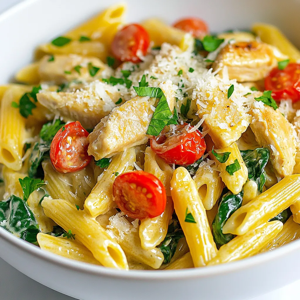Indulge in this creamy chicken ranch pasta that's perfect for busy weeknights! This easy pasta recipe features tender chicken, fresh spinach, and rich flavors, all enhanced by ranch seasoning chicken. Made with hearty penne pasta, it's a must-try among penne pasta recipes. In just 25 minutes, savor a delightful chicken and spinach pasta dish the whole family will love. Click for the full recipe and dish up something special tonight! #CreamyChickenRanchPasta #EasyPastaRecipes #RanchSeasoningChicken #PennePastaRecipes