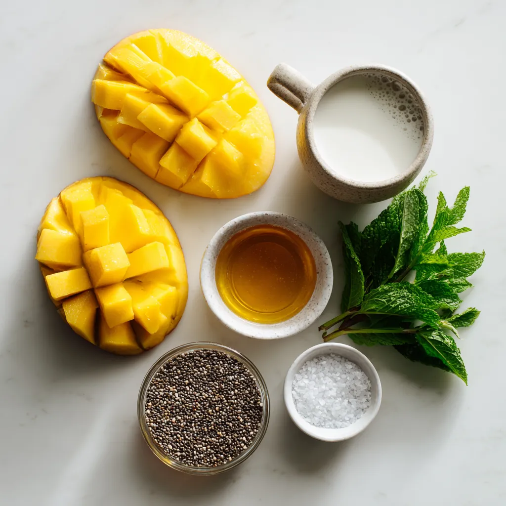 Each ingredient adds a special touch. Coconut milk creates a rich, creamy base. Ripe mango adds sweetness and a burst of flavor. Chia seeds thicken the pudding and give it a fun texture. Maple syrup or honey sweetens the dish naturally. Vanilla extract enhances the overall taste, while a pinch of salt balances the flavors. Fresh mint leaves on top provide a nice, fresh finish.