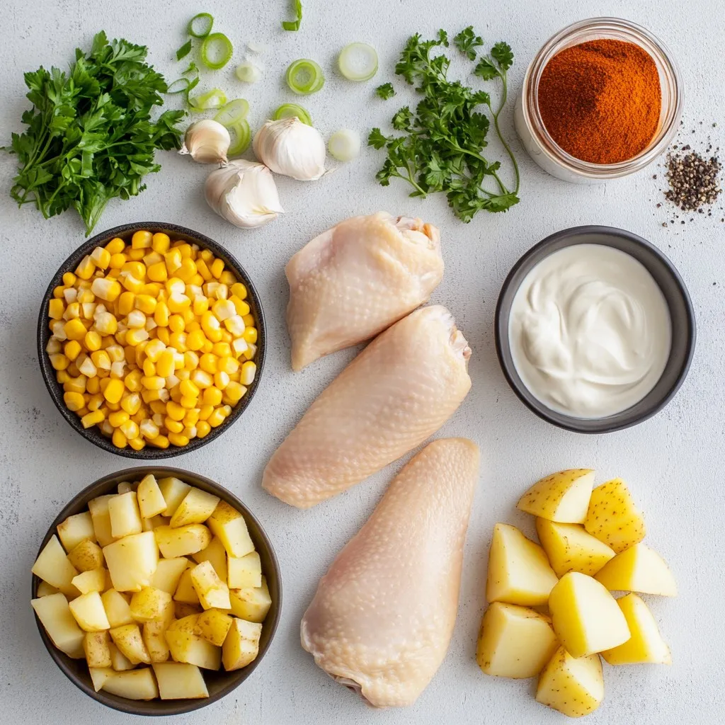 These ingredients come together to create a hearty and tasty meal. The chicken adds protein, while the corn and potatoes give it a nice texture.