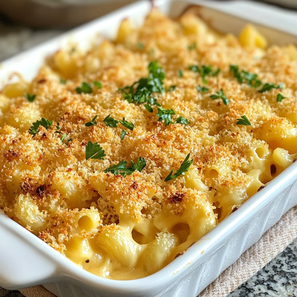 To get that great crunch, use panko breadcrumbs. They are lighter and crispier than regular breadcrumbs. Mix them with grated parmesan and a bit of olive oil. This adds flavor and helps the topping brown nicely. Spread this mixture evenly over the mac and cheese. Bake until golden. Keep an eye on it. You want it crispy, not burnt.