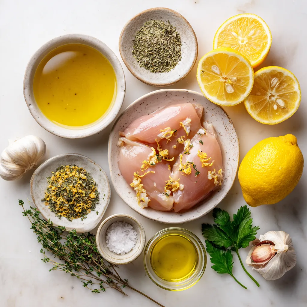 Start by gathering all your ingredients. You will need four boneless, skinless chicken breasts, garlic, lemons, olive oil, and herbs. It is essential to measure everything beforehand. This will make the process smooth and easy.