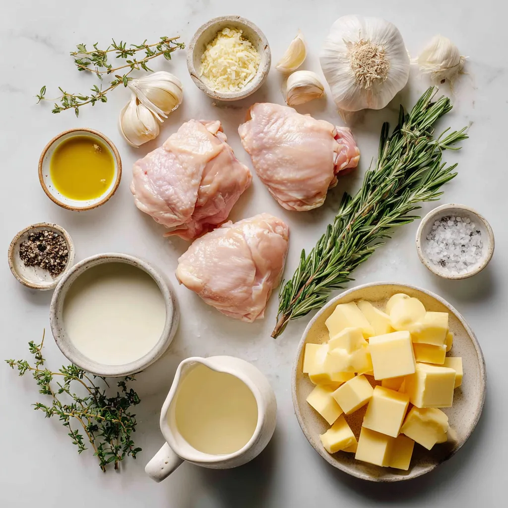 In this recipe, we use simple yet fresh ingredients. The chicken thighs give the dish a tender base. Garlic adds a warm, rich flavor. Fresh rosemary and thyme bring a lovely aroma and depth to the meal. Olive oil helps the herbs stick to the chicken while cooking, ensuring every bite is packed with flavor.