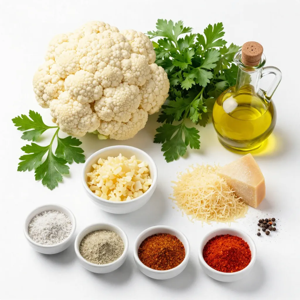 - 1 large head of cauliflower, cut into florets - 4 tablespoons olive oil - 4 cloves garlic, minced - 1/2 cup grated Parmesan cheese - 1 teaspoon garlic powder - 1 teaspoon onion powder - 1/2 teaspoon paprika - Salt and pepper to taste - Fresh parsley, chopped (for garnish) Measuring ingredients right helps your dish taste great. Use dry measuring cups for solids and liquid cups for liquids. Make sure your measuring spoons are level for dry spices. If you need substitutes, use coconut oil instead of olive oil. You can swap Parmesan for nutritional yeast for a dairy-free option. Cauliflower is low in calories and high in nutrients. It is a great source of vitamins C and K. One serving has about 100 calories, 7 grams of carbohydrates, and 4 grams of protein. This dish is rich in fiber, which aids digestion and keeps you full. Plus, it’s a great way to enjoy veggies while getting essential nutrients. {{ingredient_image_1}} 1. Preheat your oven to 425°F (220°C). This high heat helps the cauliflower get crispy. 2. Cut a large head of cauliflower into florets. Try to make them even in size. This helps them cook evenly. 1. In a big bowl, mix the cauliflower florets with 4 tablespoons of olive oil. 2. Add 4 minced cloves of garlic, 1 teaspoon of garlic powder, 1 teaspoon of onion powder, and 1/2 teaspoon of paprika. 3. Sprinkle with salt and pepper. Toss everything well until the cauliflower is coated. 1. Spread the seasoned cauliflower on a baking sheet lined with parchment paper. 2. Roast in the oven for about 25 minutes. Stir halfway through to ensure even cooking. The cauliflower should be tender and golden brown. 3. Take the baking sheet out and sprinkle 1/2 cup of grated Parmesan cheese over the florets. 4. Put it back in the oven for another 5-7 minutes. The cheese should melt and get crispy. Now, your Garlic Parmesan Roasted Cauliflower is almost ready! Enjoy the rich flavors and great texture. To achieve the perfect roast texture, start by cutting the cauliflower into even florets. This helps them cook at the same rate. Toss the florets well with olive oil and seasonings. Make sure each piece is coated. This step helps create a crispy outside while keeping the inside tender. Roast at 425°F (220°C). This high heat gives the best results. To avoid soggy cauliflower, do not crowd the baking sheet. Spread the florets evenly. If they touch, steam will form, making them mushy. Stir halfway through cooking to ensure even roasting. Adding spices can give your dish more depth. Try some smoked paprika for a nice twist. A pinch of cayenne can add heat. Mix in herbs like thyme or rosemary for extra flavor. Balsamic glaze or lemon juice can brighten the dish. Drizzle some on before serving. This adds a fresh note that complements the melt-in-your-mouth cheese. Pair your roasted cauliflower with proteins like grilled chicken or fish. It also works well with grains like quinoa or rice. Serve alongside a crisp salad for a balanced meal. For a beautiful presentation, use a vibrant dish. Garnish with fresh parsley for a pop of color. Drizzle a bit of olive oil on top for extra shine. This makes it look even more appetizing. Pro Tips Choose Fresh Cauliflower: Select a firm and compact head of cauliflower for the best flavor and texture. Enhance Flavor with Herbs: Consider adding dried herbs like oregano or thyme for an aromatic twist. Monitor Roasting Time: Keep an eye on the cauliflower to prevent burning; every oven is different. Serve Immediately: For the best taste and texture, serve the roasted cauliflower right after it comes out of the oven. {{image_2}} If you want to change the cheese, try mozzarella. Mozzarella melts well and adds a nice stretch. For a vegan option, use nutritional yeast. It gives a cheesy flavor without dairy. You can spice things up with red pepper flakes. This adds heat and makes the dish lively. Try mixing in Herbs de Provence or Italian seasoning for a fresh twist. These herbs bring a fragrant taste that pairs well with the garlic. Garlic Parmesan roasted cauliflower can shine as a main dish. Just add a grain like quinoa or rice. You can also toss it in a salad for a crunchy boost. It works great in wraps, bringing flavor to your lunch. Want to elevate your pizza? Use it as a topping, and watch your friends ask for more! To store leftovers properly, let the Garlic Parmesan Roasted Cauliflower cool first. Place it in an airtight container. This keeps the flavor fresh. You can store it in the fridge for up to three days. Glass containers work well, as they do not stain or hold odors. For the best reheating method, use the oven. Preheat your oven to 350°F (175°C). Spread the cauliflower on a baking sheet. This helps it stay crispy. Heat for about 10-15 minutes. If you're in a hurry, you can use a microwave, but it may become soggy. To avoid drying out, cover the dish with a damp paper towel while reheating. Yes, you can freeze Garlic Parmesan Roasted Cauliflower! To do this, let it cool completely. Place it in a freezer-safe bag or container. Remove as much air as possible before sealing. It can last up to three months in the freezer. When ready to eat, thaw it in the fridge overnight. Reheat it in the oven to regain its crispy texture. How long does it take to roast cauliflower? It takes about 25 minutes to roast cauliflower until it's tender and golden. For the best taste, stir it halfway through. Can I use frozen cauliflower for this recipe? Yes, you can use frozen cauliflower. Just make sure to thaw it and drain excess moisture before roasting. Is this dish gluten-free? Yes, Garlic Parmesan Roasted Cauliflower is naturally gluten-free. It uses no gluten-containing ingredients. Can it be made dairy-free? Yes, you can make it dairy-free. Substitute the Parmesan with a dairy-free cheese or nutritional yeast. What to do if my cauliflower is too mushy? If your cauliflower is mushy, it likely roasted too long. Next time, check it at 20 minutes. Why didn't my cheese get cr