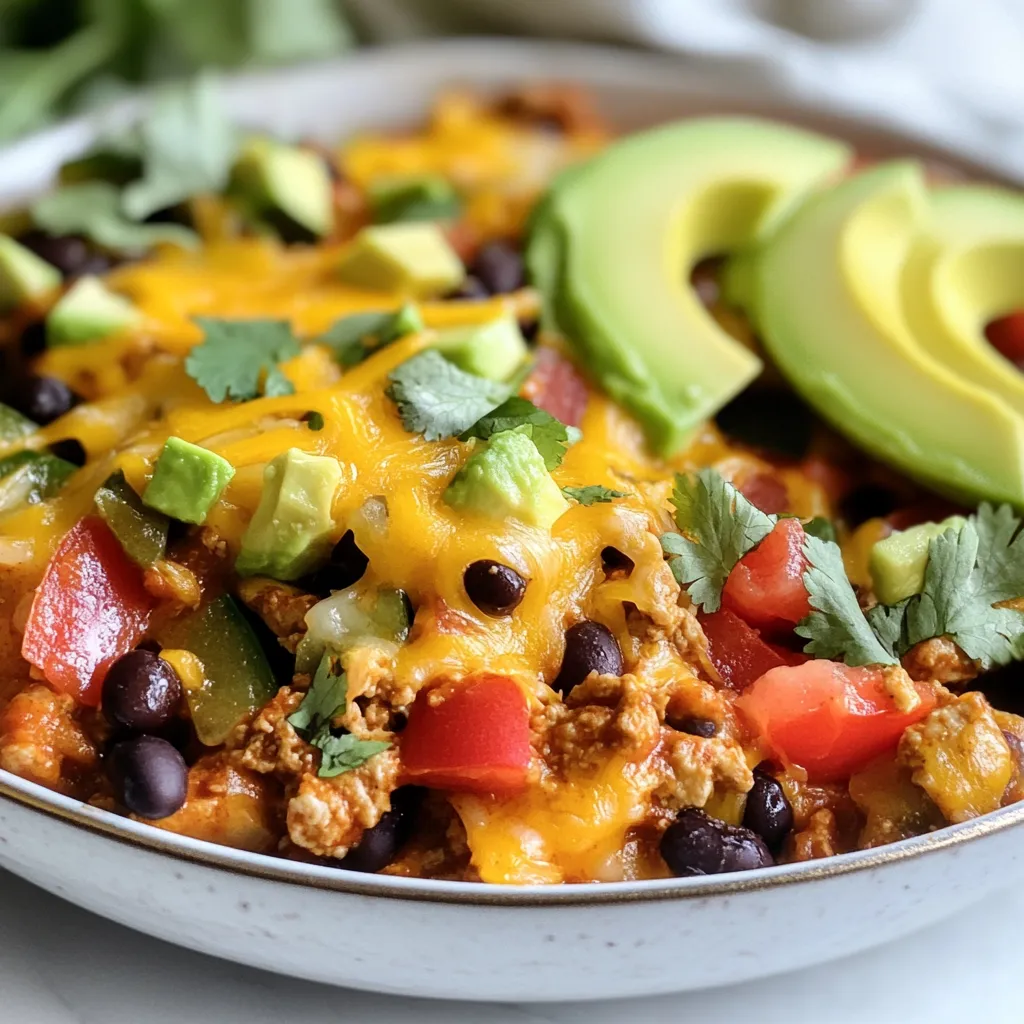 To make a tasty Healthy Enchilada Skillet, you need these key ingredients: - 1 tablespoon olive oil - 1 onion, diced - 2 cloves garlic, minced - 1 bell pepper, chopped (any color) - 1 zucchini, diced - 1 can (15 oz) black beans, rinsed and drained - 1 can (14 oz) diced tomatoes (fire-roasted preferred) - 2 tablespoons enchilada sauce (homemade or store-bought) - 1 teaspoon ground cumin - 1 teaspoon chili powder - Salt and pepper to taste - 1 cup corn (fresh or frozen) - 1 cup shredded low-fat cheese (cheddar or Mexican blend) - 1/4 cup fresh cilantro, chopped (for garnish) - 1 avocado, sliced (for serving) These ingredients come together to create a rich flavor. The beans add protein, while the veggies bring freshness. The spices give it that classic enchilada taste. You can switch up the recipe with these optional ingredients: - Jalapeños for heat - Corn tortillas, cut into strips - Different cheese, like pepper jack - Greek yogurt instead of sour cream - Lime juice for brightness Feel free to add or swap items based on what you like. This dish is flexible and fun to make! This dish is not just tasty; it's also good for you. Here are some highlights: - Black beans: High in fiber and protein, they help keep you full. - Zucchini: Low in calories and packed with vitamins, it adds nutrition. - Bell pepper: Rich in vitamins A and C, it boosts your immune system. - Corn: Provides fiber and adds a sweet flavor. - Avocado: Full of healthy fats, it promotes heart health. Using these ingredients makes your meal balanced and nutritious. You get a delicious mix of flavors and health benefits all in one skillet. {{ingredient_image_1}} To start, gather all your ingredients. You will need: - 1 tablespoon olive oil - 1 onion, diced - 2 cloves garlic, minced - 1 bell pepper, chopped (any color) - 1 zucchini, diced - 1 can (15 oz) black beans, rinsed and drained - 1 can (14 oz) diced tomatoes (fire-roasted preferred) - 2 tablespoons enchilada sauce (homemade or store-bought) - 1 teaspoon ground cumin - 1 teaspoon chili powder - Salt and pepper to taste - 1 cup corn (fresh or frozen) - 1 cup shredded low-fat cheese (cheddar or Mexican blend) - 1/4 cup fresh cilantro, chopped (for garnish) - 1 avocado, sliced (for serving) Next, chop your onion, bell pepper, zucchini, and garlic. This step makes cooking easier. Rinse and drain the black beans. These steps prepare you for quick cooking. Start by heating the olive oil in a large skillet over medium heat. Once the oil is hot, add the diced onion. Sauté for about 3-4 minutes until it softens. Then, stir in the minced garlic. Cook for another minute until it smells good. Add the chopped bell pepper and zucchini next. Cook these for 4-5 minutes until they begin to soften. This mix gives a nice base for your skillet. Now, mix in the black beans, diced tomatoes, and enchilada sauce. Add ground cumin, chili powder, salt, and pepper too. Stir it all well. Bring this mixture to a gentle simmer. Cook uncovered for about 8-10 minutes. This step allows the flavors to blend together. After that, stir in the corn and half of the shredded cheese. Make sure everything is evenly mixed. Sprinkle the rest of the cheese on top. Cover the skillet and cook for an additional 3-5 minutes. The cheese should melt nicely. To ensure even cooking, keep your heat at medium. Stir the mixture often, so nothing sticks or burns. If the skillet looks too dry, add a splash of water. This will help keep the mixture moist. Cut your veggies into similar sizes. This helps them cook evenly. Also, don’t rush the simmering step. Allowing time for the flavors to meld is key. Enjoy the process, and your Healthy Enchilada Skillet will turn out great! To make your Healthy Enchilada Skillet pop, focus on spices. You can add a pinch of smoked paprika for depth. A squeeze of fresh lime juice brightens the meal. Fresh herbs like cilantro add a burst of flavor, too. You can swap in a dash of hot sauce for some heat. If you need a gluten-free option, use gluten-free enchilada sauce. You can substitute black beans with pinto or kidney beans if you prefer. For a dairy-free version, try a plant-based cheese or skip the cheese altogether. If you want a low-carb meal, replace the corn with cauliflower rice. Serve your enchilada skillet in a colorful dish to make it pop. Top with avocado slices and fresh cilantro for a nice touch. You can also add a dollop of Greek yogurt or guacamole for creaminess. Pair it with a side salad or tortilla chips for a fun crunch. Enjoy this meal warm for the best taste! Pro Tips Use Fire-Roasted Tomatoes: Opting for fire-roasted diced tomatoes enhances the smoky flavor of your enchilada skillet, giving it an authentic taste. Customize Your Veggies: Feel free to substitute or add other vegetables like corn, spinach, or mushrooms based on your preference or what you have on hand. Control the Heat: If you like it spicy, consider adding chopped jalapeños or a pinch of cayenne pepper to the skillet for an extra kick. Make It Ahead: This dish can be prepared in advance and stored in the refrigerator. Simply reheat when ready to serve for a quick and easy meal. {{image_2}} You can easily make this dish vegetarian or vegan. For a vegetarian version, skip the cheese or use a low-fat cheese option. If you want a vegan option, use plant-based cheese or omit it altogether. You can add more veggies like spinach or mushrooms for extra flavor. These options keep the dish healthy and tasty. Adjusting the spice level is simple. If you like heat, add jalapeños or a pinch of cayenne pepper. If you prefer mild flavors, reduce the chili powder. You can also serve hot sauce on the side. This way, everyone can customize their plates to their taste. If you want to change the protein, try using lentils or chickpeas. Both options add great texture and nutrition. For a meat option, you can add cooked chicken or turkey. Another choice is to use tofu. It soaks up flavors well and makes the dish hearty. To k