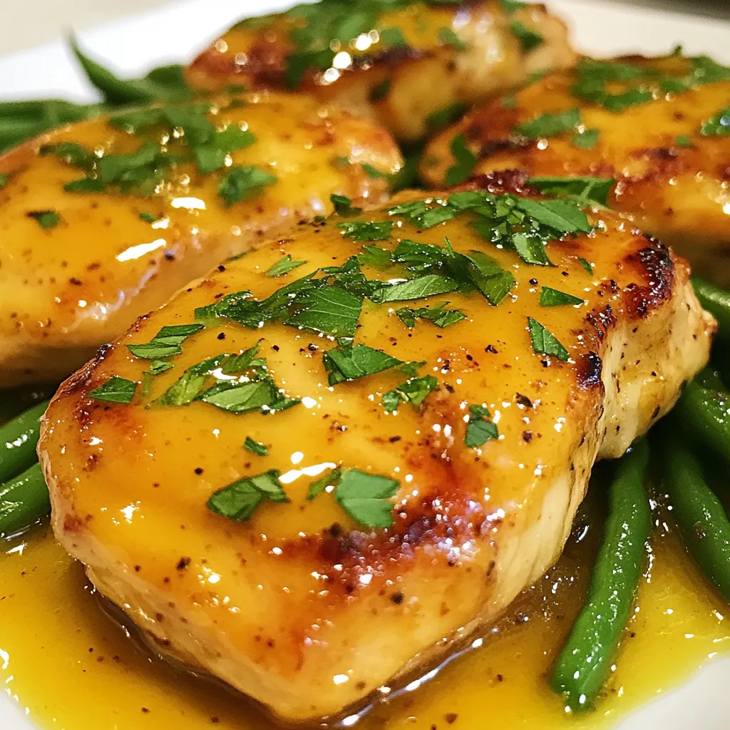 - 4 boneless, skinless chicken breasts - 1/4 cup honey - 1/4 cup Dijon mustard - 2 tablespoons olive oil - 3 cloves garlic, minced - 1 teaspoon fresh thyme (or 1/2 teaspoon dried thyme) - Salt and pepper to taste - 1 tablespoon apple cider vinegar - Fresh parsley, chopped (for garnish) The main ingredients form the base of this dish. The chicken breasts are tender and juicy, perfect for absorbing all the flavors. Honey adds sweetness while Dijon mustard gives a nice tang. Olive oil helps the marinade stick and keeps the chicken moist. The seasoning and marinade components enhance the chicken's flavor. Fresh garlic adds a strong punch. Thyme brings an earthy note, and salt and pepper balance everything out. Apple cider vinegar brightens the marinade and adds depth. Garnishing with fresh parsley makes the dish look vibrant. It adds a fresh taste and bright color. You can also serve this chicken with sides like green beans or roasted veggies. Enjoy creating this delightful meal! {{ingredient_image_1}} First, grab a medium mixing bowl. In it, whisk together the following: - 1/4 cup honey - 1/4 cup Dijon mustard - 2 tablespoons olive oil - 3 cloves garlic, minced - 1 teaspoon fresh thyme (or 1/2 teaspoon dried thyme) - 1 tablespoon apple cider vinegar - Salt and pepper to taste Mix these ingredients well until they combine into a smooth blend. This marinade packs a punch of flavor! Next, take your chicken. Place the 4 boneless, skinless chicken breasts in a large ziplock bag or shallow dish. Pour the marinade over the chicken. Make sure every piece is coated. Seal the bag or cover the dish tightly. Now, refrigerate the chicken for at least 30 minutes. If you have extra time, marinate it for up to 4 hours. This helps the flavors seep into the meat. Preheat your oven to 375°F (190°C). While the oven heats, remove the chicken from the marinade. Place the chicken in a baking dish. Remember to save some marinade for later! Bake the chicken for 25 to 30 minutes. Use a meat thermometer to check that the internal temperature reaches 165°F (75°C). Halfway through cooking, baste the chicken with the reserved marinade. This keeps it moist and flavorful. Once done, take the chicken out of the oven. Let it rest for 5 minutes before slicing. This resting time keeps the chicken juicy. Enjoy your Honey Dijon Chicken! Marinate the chicken for at least 30 minutes. This helps the flavors sink in. For an even better taste, let it sit for up to 4 hours. The longer it marinates, the more intense the flavor becomes. A good marinade transforms plain chicken into a tasty dish. Always preheat your oven to 375°F (190°C). A hot oven cooks the chicken evenly. It also helps the marinade caramelize nicely. If you skip this step, your chicken might turn out uneven. Preheating ensures a juicy and flavorful meal every time. Let the chicken rest for 5 minutes after baking. This step keeps the juices inside. If you cut it too soon, all that flavor runs out. The resting time also makes the chicken tender. It’s a simple trick to elevate your dish! Pro Tips Marinade Time: Allow the chicken to marinate for at least 1 hour for the best flavor absorption, but do not exceed 4 hours to prevent the texture from becoming mushy. Cooking Temperature: Ensure the oven is fully preheated before placing the chicken inside; this helps achieve a nice sear and locks in moisture. Basting for Flavor: Basting the chicken with the reserved marinade not only adds flavor but also helps keep the meat juicy throughout the cooking process. Resting Period: Let the chicken rest for at least 5 minutes after baking; this allows the juices to redistribute, resulting in a more tender piece of meat. {{image_2}} You can use many proteins for this recipe. If you want something different, try pork or tofu. Pork pairs well with honey and Dijon, giving it a sweet and tangy flavor. For a plant-based option, tofu absorbs the marinade nicely. Just press the tofu to remove excess water, then marinate it like the chicken. Both options will still taste great when cooked. To change the flavor, add spices or citrus. A pinch of paprika or cayenne can bring heat. Lemon or lime juice adds a fresh zing. You can also try adding herbs like rosemary or oregano. These small changes can make your dish unique and exciting. Play around with flavors to find what you enjoy most. You can grill or bake Honey Dijon Chicken. Grilling adds a nice smoky flavor and can make the chicken juicy. If you choose to grill, preheat your grill and cook each side for about 6-8 minutes. Baking is easy and keeps the chicken moist. Simply follow the oven steps in the recipe. Both methods turn out delicious! To store leftover Honey Dijon Chicken, first let it cool. After cooling, place the chicken in an airtight container. You can also wrap it with plastic wrap or aluminum foil. Make sure you store it in the fridge. It will stay good for about 3 to 4 days. When you are ready to eat, check for any off smells or changes in texture. If you want to save Honey Dijon Chicken for later, freezing is a great option. First, let the chicken cool completely. Then, wrap each piece tightly in plastic wrap. You can also put them in a freezer-safe bag. Make sure to remove as much air as possible. Label the bag with the date. Frozen chicken will keep well for about 2 to 3 months. When you’re ready to use it, thaw it overnight in the fridge. To reheat your Honey Dijon Chicken without drying it out, use the oven. Preheat your oven to 350°F (175°C). Place the chicken in a baking dish and add a splash of chicken broth or water. Cover the dish with foil to keep in moisture. Heat for about 15 to 20 minutes, or until warmed through. You can also use the microwave, but be careful. Heat it in short bursts to avoid dryness. Enjoy your tasty chicken as if it were fresh! You can pair Honey Dijon Chicken with many tasty sides. Here are some great ideas: - Steamed green beans: Their crispness works well with the chicken's flav