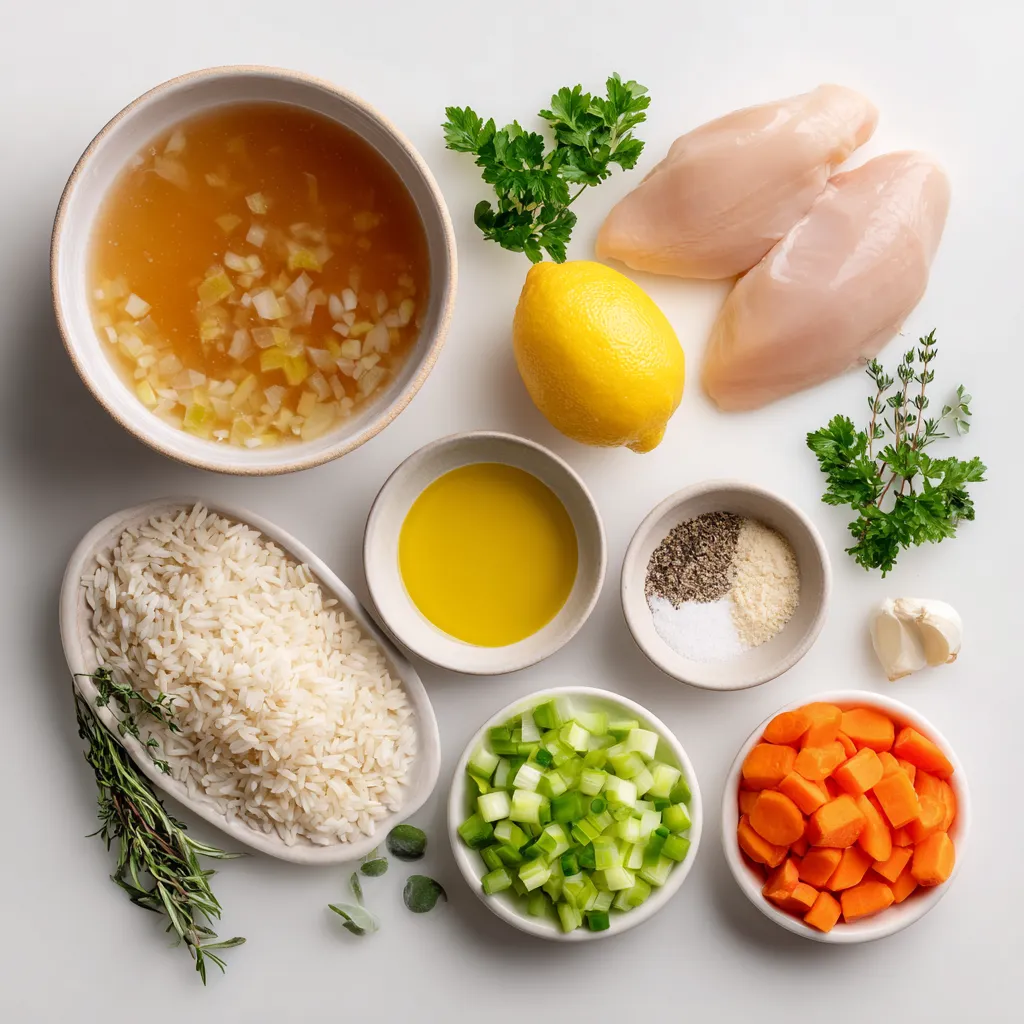 To create a bowl of zesty lemon chicken soup, gather the following ingredients: