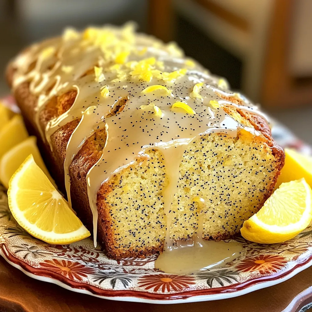 To make lemon poppy seed loaf, gather these items: - 1 ½ cups all-purpose flour - ½ cup granulated sugar - 2 tablespoons poppy seeds - 1 teaspoon baking powder - ½ teaspoon baking soda - ¼ teaspoon salt - ½ cup unsalted butter, softened - 2 large eggs - ½ cup plain Greek yogurt - 2 tablespoons lemon zest (from about 2 lemons) - ¼ cup fresh lemon juice - 1 teaspoon vanilla extract Each ingredient adds a special touch. The flour gives structure and the sugar adds sweetness. Poppy seeds provide a nice crunch, while baking powder and baking soda help it rise. Butter makes the loaf rich and moist. Eggs bind the mix, and Greek yogurt adds creaminess. Zest and juice bring vibrant lemon flavor. You can swap ingredients for different flavors. Instead of all-purpose flour, try almond or coconut flour for a gluten-free option. You can use honey or maple syrup in place of sugar for a natural sweetener. Greek yogurt can be replaced with sour cream or a dairy-free yogurt. If you want a dairy-free option, use coconut oil instead of butter. For a twist, swap lemon zest with orange or lime zest. To bake this loaf, you need a few tools: - 9x5-inch loaf pan - Mixing bowls (one large and one medium) - Hand mixer or stand mixer - Whisk - Measuring cups and spoons - Spatula - Toothpick for testing doneness These tools help you mix, bake, and check if your loaf is ready. With the right tools, you can make this loaf with ease. 1. Start by preheating your oven to 350°F (175°C). 2. Grease a 9x5-inch loaf pan or line it with parchment paper. This helps with easy removal. 3. In a mixing bowl, whisk together these dry ingredients: - 1 ½ cups all-purpose flour - ½ cup granulated sugar - 2 tablespoons poppy seeds - 1 teaspoon baking powder - ½ teaspoon baking soda - ¼ teaspoon salt 4. In another large bowl, cream together ½ cup unsalted butter until it's light and fluffy. This takes about 2-3 minutes. 5. Add 2 large eggs, one at a time, to the creamed butter. Mix well after each egg. 6. Then mix in ½ cup plain Greek yogurt, 2 tablespoons lemon zest, ¼ cup fresh lemon juice, and 1 teaspoon vanilla extract until everything is smooth. 7. Gradually add the dry mixture to the wet mixture. Mix until just combined. Do not overmix. 1. Pour the batter into your prepared loaf pan. Smooth the top with a spatula. 2. Bake in your preheated oven for 45-55 minutes. Check if it's done by inserting a toothpick in the center. It should come out clean. 1. Once baked, let the loaf cool in the pan for 10 minutes. 2. Carefully transfer the loaf to a wire rack to cool completely. 3. For a little extra sweetness, drizzle a simple lemon glaze over the top. Use powdered sugar mixed with lemon juice. 4. Slice and serve on a nice platter. Add fresh lemon wedges for a pop of color. To get a fluffy lemon poppy seed loaf, cream the butter well. This means mixing it until it is light and airy. Adding eggs one by one helps, too. Make sure to mix after each egg to keep the texture light. When you add the dry mix, stir gently. Overmixing can make the loaf dense. One big mistake is not measuring the flour correctly. Too much flour can lead to a dry loaf. Also, don’t forget to preheat your oven! Baking in a cold oven can ruin the rise. Another tip is to check the loaf with a toothpick. If it comes out wet, it needs more time. Patience is key here. Lemon zest and fresh juice are the stars of this recipe. Zest adds a bright, fresh flavor. Use a microplane to get fine zest. Fresh lemon juice brings acidity and balance. The combination lifts the loaf and makes it pop. You can even add more zest for a stronger lemon flavor if you like. {{image_2}} You can easily make this loaf gluten-free. Just swap all-purpose flour with a gluten-free blend. Make sure your blend has xanthan gum. This will help the loaf rise well. The flavor stays bright and zesty. I recommend using a 1:1 gluten-free flour mix for best results. Want to change it up? Try adding fruits or nuts to your loaf. Blueberries, raspberries, or chopped apples can add a fresh twist. You can also use nuts. Walnuts or almonds work great. Just fold them into the batter gently. This adds texture and flavor, making every bite special. If you prefer muffins, use this recipe to make them. Just pour the batter into a muffin tin instead of a loaf pan. Fill each cup about two-thirds full. Bake for about 18-22 minutes. Check with a toothpick to see if they’re done. Muffins are fun and easy to share! To keep your lemon poppy seed loaf fresh, wrap it in plastic wrap. Place it in an airtight container or a zip-top bag. Store it at room temperature for up to three days. If you need to keep it longer, consider freezing it. You can freeze the loaf for up to three months. First, let it cool completely. Wrap it tightly in plastic wrap and then in aluminum foil. This double wrap prevents freezer burn. When you want to enjoy it, simply remove it from the freezer and let it thaw in the fridge or at room temperature. To reheat the loaf, slice it into pieces first. Place the slices in a microwave for about 10-15 seconds. If you prefer, you can also warm it in an oven. Preheat the oven to 350°F (175°C) and heat for about 10 minutes. This keeps the loaf moist and brings back its fresh-baked flavor. Yes, you can use other types of yogurt. Greek yogurt adds creaminess and tang. If you want, you can try regular yogurt or even non-dairy yogurt. Just make sure it has a similar texture. This keeps the loaf moist and tasty. The lemon poppy seed loaf stays fresh for about 3 to 4 days. Keep it in an airtight container at room temperature. You can also store it in the fridge for up to a week. If you want it to last longer, consider freezing it. To add moisture, try using more yogurt or a bit of sour cream. Applesauce also works well. You can add a few tablespoons of milk if the batter seems thick. This keeps your loaf tender and soft. Yes, you can skip the poppy seeds if you prefer. The loaf will still taste great wit