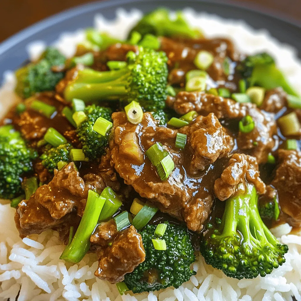 - 1 pound minced beef - 3 cups broccoli florets - 2 tablespoons soy sauce - 1 tablespoon oyster sauce - 1 tablespoon sesame oil - 1 tablespoon ginger, minced - 3 cloves garlic, minced - Salt and pepper to taste - 2 tablespoons green onions, sliced - 1 tablespoon cornstarch - 1 cup beef broth - 2 tablespoons vegetable oil Gather these ingredients before starting. Fresh broccoli makes a big difference in taste. Minced beef cooks quickly, making it perfect for a fast meal. Soy sauce and oyster sauce add deep flavor. Sesame oil gives it a nice finish. Prepare the garlic and ginger for that aromatic punch. The green onions will add a fresh crunch. Keep salt and pepper ready to adjust the flavor. Cornstarch helps thicken the sauce. Beef broth adds richness and depth to the dish. Finally, have vegetable oil ready to cook the beef. Having all your ingredients ready helps you cook smoothly. It makes the process fun and easy. You will enjoy the smells and tastes as you cook! - Start by boiling water in a pot. - Add the broccoli florets and blanch for 2 minutes. - Look for bright green and slightly tender broccoli. - Drain the broccoli and set it aside for later. - In a small bowl, gather these ingredients: - 2 tablespoons soy sauce - 1 tablespoon oyster sauce - 1 tablespoon sesame oil - 1 tablespoon minced ginger - 3 cloves minced garlic - 1 tablespoon cornstarch - 1 cup beef broth - A pinch of salt and pepper - Whisk these ingredients together until smooth. - Set the sauce mixture aside for later use. - Heat 2 tablespoons of vegetable oil in a large skillet. - Use medium-high heat for best results. - Add the minced beef to the skillet. - Stir-fry the beef for about 5 minutes. - Break it apart into smaller pieces as it cooks. - Look for a nice brown color to ensure it’s fully cooked. - Once the beef is cooked, add the blanched broccoli to the skillet. - Pour the prepared sauce over the beef and broccoli. - Stir everything together well. - Cook until the sauce thickens, about 2-3 minutes. - Remove the skillet from heat. - Stir in the sliced green onions for freshness. - Taste the dish and adjust seasonings as needed. To make the beef and broccoli just right, avoid overcooking the beef. Cook it for about five minutes, until it is nicely browned. This keeps it juicy and tender. For the broccoli, blanch it in boiling water for just two minutes. This will help it stay bright green and crisp. After blanching, drain it well and set it aside. For sides, I recommend serving this dish over steamed jasmine rice or cauliflower rice. Both options pair well with the beef and broccoli. You can also add a sprinkle of sesame seeds on top for a nice crunch. This little touch adds flavor and looks great on the plate. To kick up the flavor, consider adding a pinch of red pepper flakes or a dash of chili sauce. These can give your dish some heat. If you want to save time later, make extra sauce and store it in the fridge. It stays fresh for about a week and works well for other dishes too. {{image_2}} You can easily swap the minced beef for other meats. Ground turkey or chicken works well. If you prefer a plant-based option, use firm tofu. Just press the tofu to remove extra water. Crumble or cube it before cooking. This gives a nice texture and absorbs the sauce well. Feel free to mix in more veggies. Bell peppers, snap peas, and carrots add color and crunch. You can also use seasonal vegetables like asparagus or zucchini. These options keep your dish fresh and interesting. Try different combos to discover your favorite mix! For gluten-free meals, choose tamari instead of soy sauce. This keeps all the flavor without gluten. If you're watching carbs, replace rice with zoodles. Zoodles are fun and light. They give a great base for the beef and broccoli. Explore these variations to fit your diet! Store your beef and broccoli in an airtight container. This keeps it fresh. It can last in the fridge for 3 to 4 days. Make sure it cools down before sealing it. Avoid leaving it out for too long. To reheat, use the microwave or stovetop. If using a microwave, heat in short bursts. Stir often to keep it even. On the stovetop, add a splash of broth to the pan. This prevents it from drying out. You can freeze cooked beef and broccoli for up to 3 months. Use freezer-safe bags, and remove as much air as possible. For thawing, place it in the fridge overnight. Reheat thoroughly before serving. To make beef and broccoli more tender, you can follow a few simple tips: - Use a tender cut of beef. Ground beef works well as it cooks quickly. - Marinate the beef. A mix of soy sauce, sesame oil, and ginger can help. - Slice against the grain. This breaks down the meat fibers and makes it softer. - Do not overcook. Cook the beef just until browned for the best texture. Yes, you can prepare this dish ahead of time. Here are some tips: - Cook the beef and broccoli. Store them in an airtight container. - Make the sauce separately. This keeps flavors fresh. - Refrigerate. The dish stays good for 3-4 days in the fridge. - Reheat gently. Use low heat to avoid overcooking when serving. If you need a substitute for oyster sauce, try these options: - Soy sauce and sugar. This mix can mimic the sweetness and saltiness. - Hoisin sauce. It brings a similar flavor with a twist. - Mushroom sauce. This is a great vegetarian alternative with deep flavor. To make this dish gluten-free, follow these steps: - Use gluten-free soy sauce. This is a great alternative. - Check your oyster sauce. Ensure it is gluten-free or swap it out. - Use cornstarch. It is naturally gluten-free and works well for thickening. To add some heat to your beef and broccoli, consider these ideas: - Add red pepper flakes. A pinch can spice things up. - Include sliced fresh chili peppers. They add both heat and color. - Use spicy sauce. Try sriracha or chili garlic sauce for extra kick. - Ginger and garlic. Increase their amounts for a stronger flavor profile. This blog post detailed h