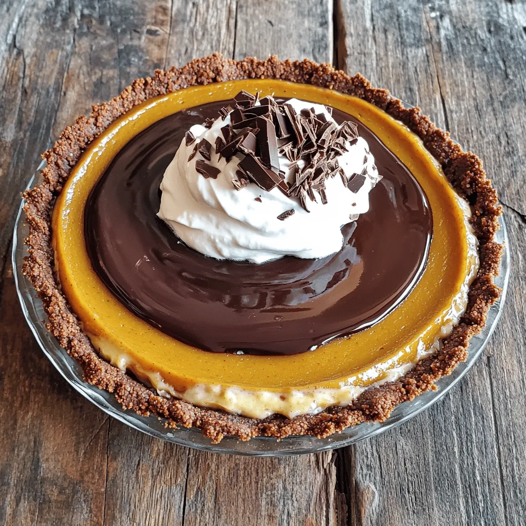 Gently pour this chocolate pumpkin mixture on top of the first layer in the crust. Use a spatula to smooth the top. This layering gives the pie a beautiful look and a rich taste.