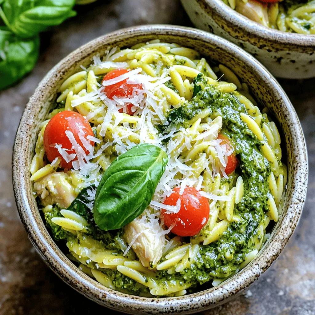 These ingredients come together to create a creamy, savory dish. Each one plays a key role. The chicken provides protein. The orzo gives a nice texture. Pesto adds rich flavor. Fresh spinach and tomatoes add color and nutrients.