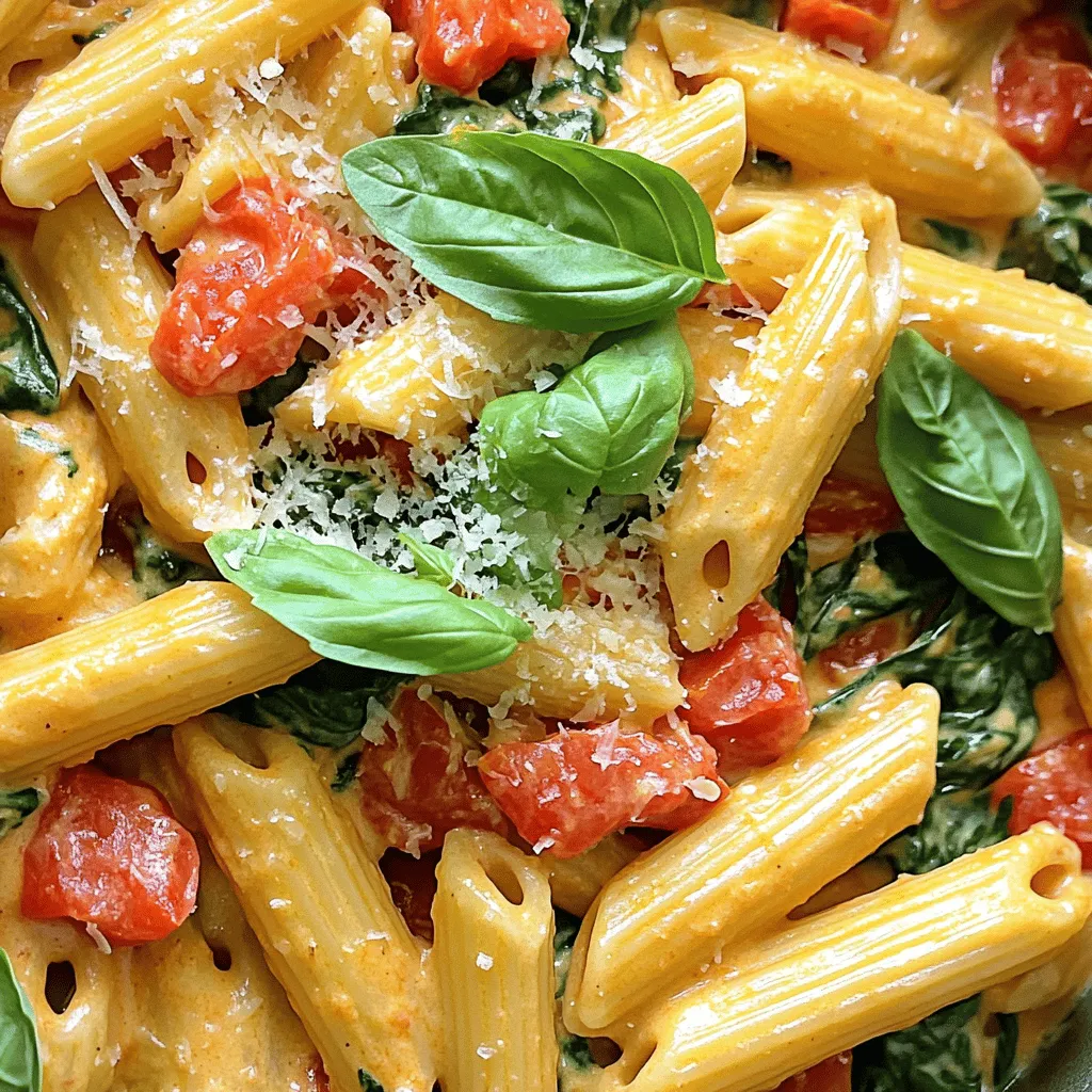 Using the right ingredients is key to this dish. You can pick between penne or fusilli pasta. Both options hold sauce well. The canned diced tomatoes add a rich flavor. The spinach gives a fresh taste and bright color.