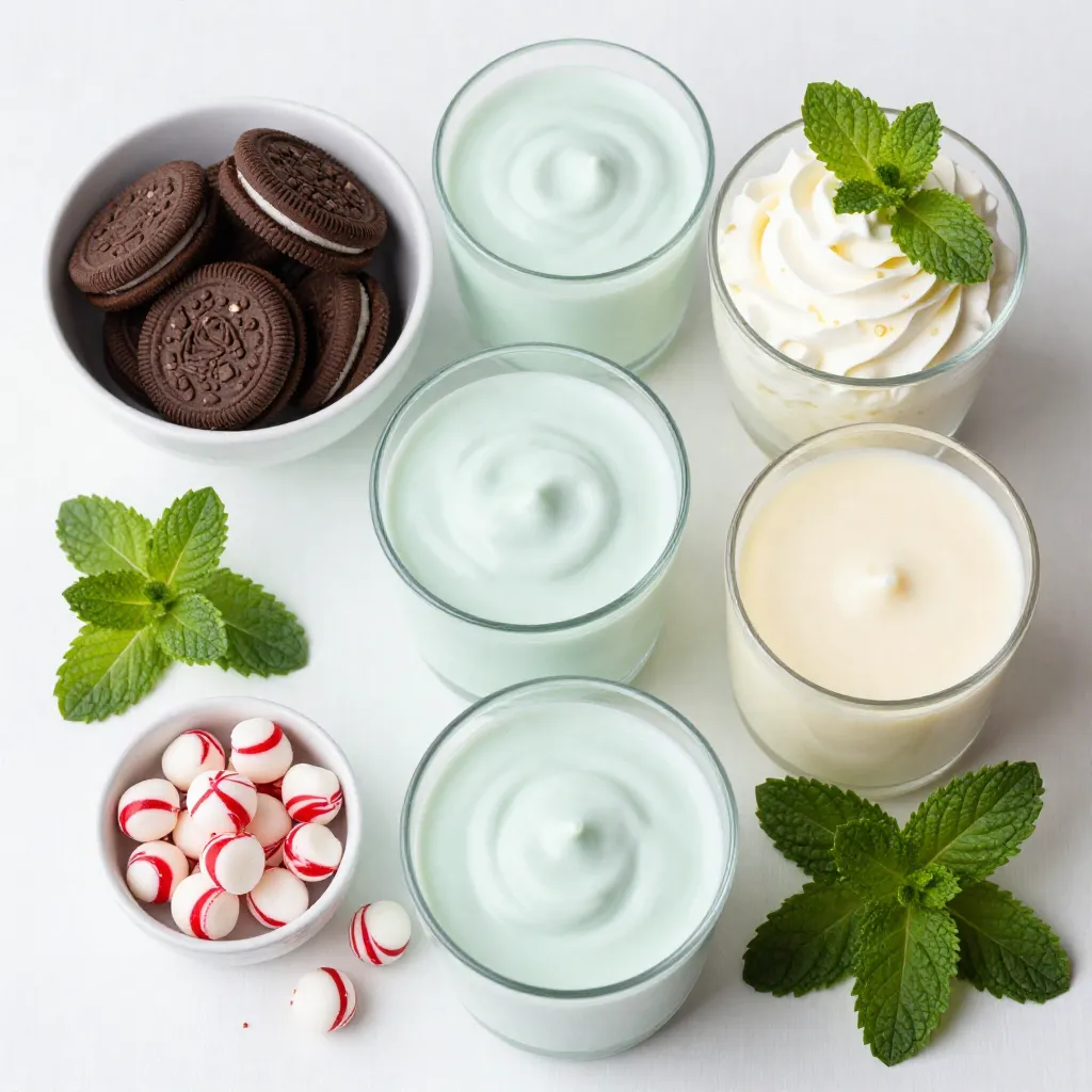 These simple ingredients create a delightful and festive dessert. The peppermint yogurt adds a refreshing flavor. The crushed cookies bring a rich, chocolatey taste. Whipped cream and vanilla pudding make everything light and creamy. Finally, the crushed peppermint candy gives a fun crunch. You can use fresh mint leaves for a nice touch. With these ingredients, you will create a treat everyone will love.