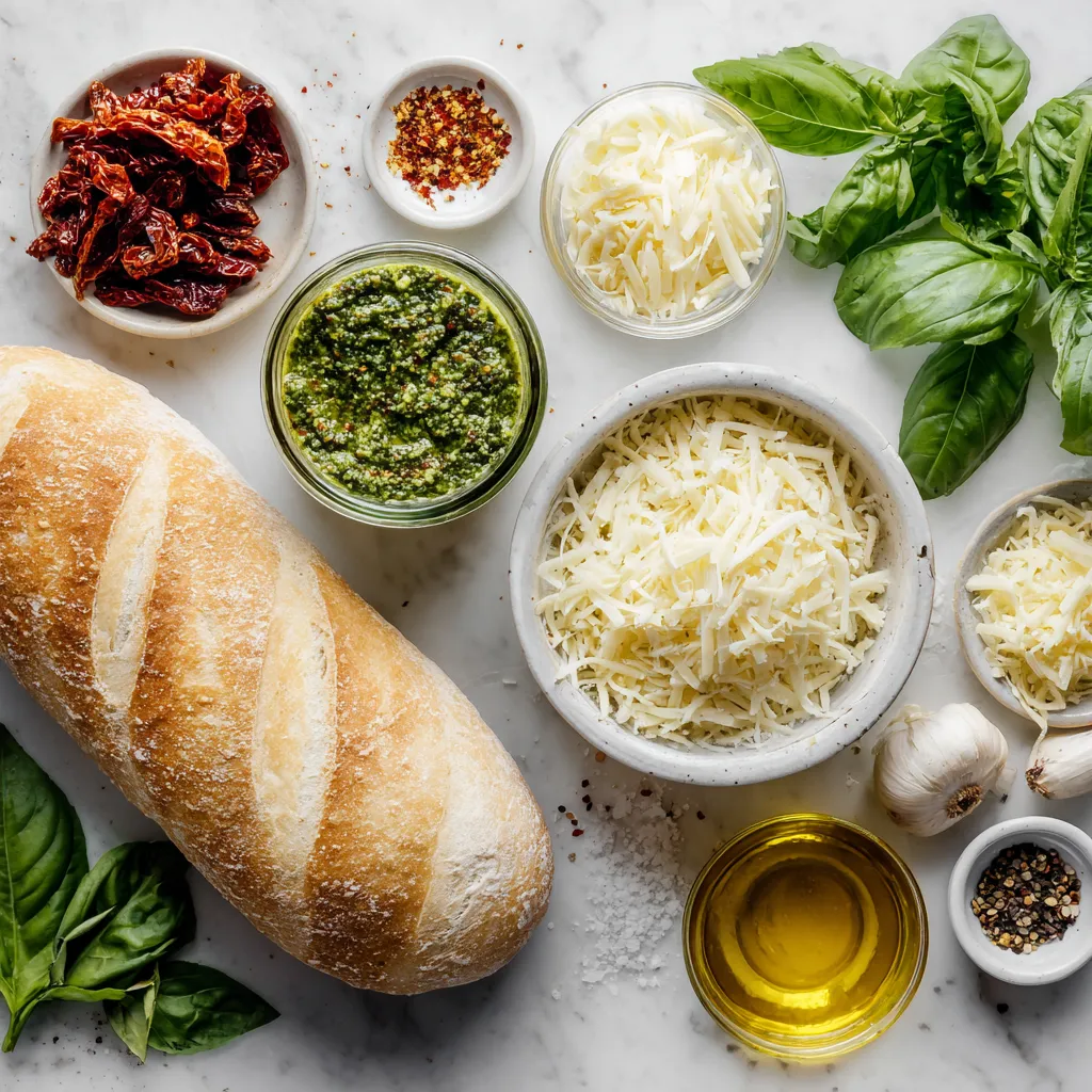 Main Ingredients for Pesto Mozzarella Stuffed Bread