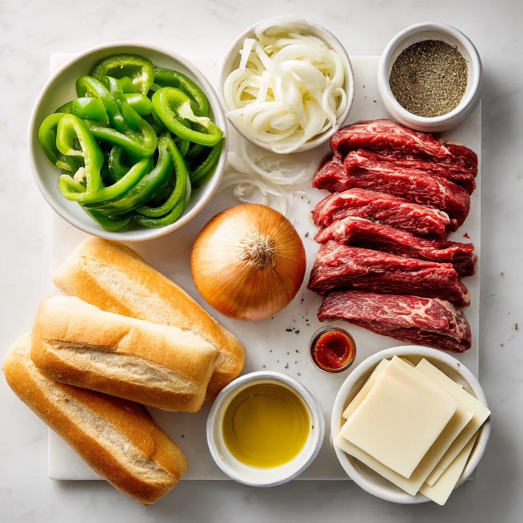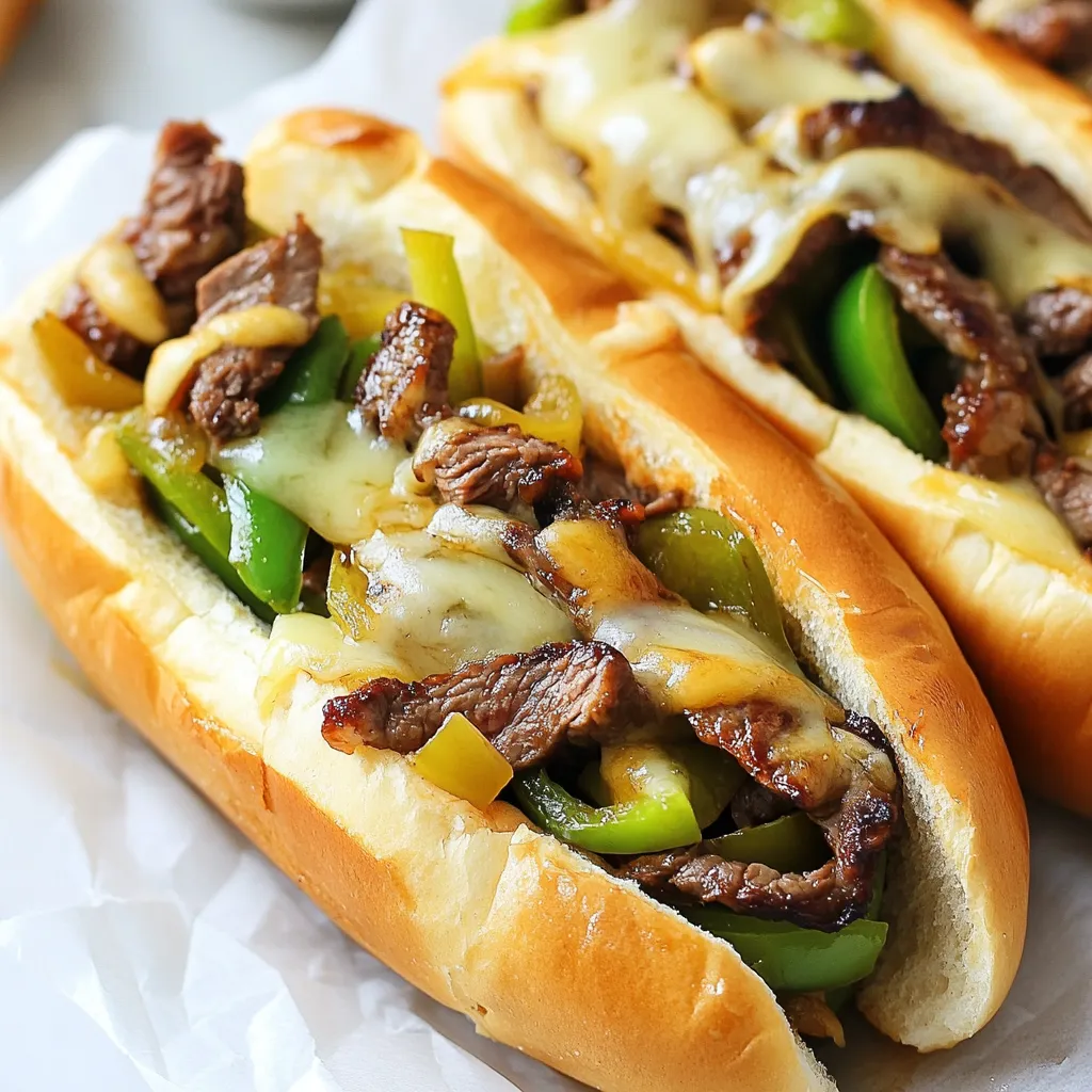 To make a great Philly cheesesteak, gather these key ingredients: - 1 lb ribeye steak, thinly sliced - 1 large onion, thinly sliced - 1 large green bell pepper, sliced - 4 hoagie rolls - 8 slices provolone cheese Ribeye steak is perfect because it is juicy and tender. Thin slices cook fast and absorb flavors well. Onions and bell peppers add sweetness and crunch. Provolone cheese melts nicely, creating the classic cheesesteak experience. You can add more flavor with these optional ingredients: - 2 cloves garlic, minced - Hot sauce, for garnish - Suggested seasonings: Try adding your favorite spices. Black pepper and paprika work well. Garlic gives depth to the dish, while hot sauce adds a spicy kick. Seasonings can enhance the taste and make it your own. Feel free to adjust based on what you enjoy! {{ingredient_image_1}} To start, take 1 pound of ribeye steak and slice it thinly. I like to use a sharp knife for this. Next, place the steak in a bowl. Add salt, pepper, and half of the minced garlic. Mix it well to ensure every piece gets coated. Let this marinate for about 15 minutes. This helps the flavors soak in and makes the steak tasty. While the steak marinates, heat 1 tablespoon of olive oil in a large skillet over medium heat. Add one large onion, thinly sliced, and one green bell pepper, also sliced. Sauté these for about 8 to 10 minutes. The goal is to get them soft and slightly caramelized. This step is important because caramelization adds sweetness and depth to your dish. After that, add the remaining garlic and cook for one more minute. Once done, transfer the veggies to a plate and set them aside. Now, use the same skillet to cook the steak. Add the second tablespoon of olive oil and increase the heat to medium-high. Add the marinated steak to the skillet. Cook for 3 to 4 minutes, stirring occasionally. It is crucial not to overcrowd the pan. This gives the steak a nice sear. When the steak is browned, return the sautéed vegetables to the skillet. Mix all ingredients together and cook for another 1 to 2 minutes to heat everything through. Next, reduce the heat to low. Divide the steak and vegetable mixture into four portions in the skillet. Place 2 slices of provolone cheese on top of each portion. Cover the skillet for 2 to 3 minutes. This helps the cheese melt nicely. Once melted, you are ready to assemble your sandwiches. To get the best sear, start with a hot skillet. Heat your pan over medium-high heat. This helps lock in the juices and gives flavor. Do not overcrowd the pan. If you add too much steak at once, it steams instead of sears. Cook in batches if needed. This way, each piece gets that nice brown crust. Cover the skillet when melting cheese. This traps heat and helps the cheese melt evenly. Place two slices of provolone on each portion of steak. If you want to switch things up, try different cheeses like mozzarella or cheddar. Each cheese brings a unique flavor to your sandwich. For an authentic look, wrap your sandwiches in parchment paper. This gives a casual street-food vibe. Serve them with crispy fries or a fresh salad on the side. A little garnish of chopped parsley can add color and freshness. This makes your meal feel complete and appealing. Pro Tips Slice the Steak Thinly: Ensure the ribeye is sliced as thinly as possible to allow it to cook quickly and remain tender. Use High Heat for Searing: Cooking the steak on high heat helps achieve that beautiful caramelization and enhances the flavor. Experiment with Cheese: While provolone is traditional, feel free to mix in mozzarella or cheddar for a different flavor profile. Rest the Sandwiches: Let the assembled sandwiches rest for a minute before serving to allow the cheese to set and prevent sogginess. {{image_2}} Philly cheesesteak sandwiches change from place to place. Different regions use different types of cheese. Provolone cheese rules in Philly, but some places use Cheez Whiz or American cheese. Each cheese gives its own taste and texture. You can also add fun ingredients. Mushrooms and different peppers are popular choices. Some people love spicy banana peppers or sweet bell peppers. Others like to add sautéed mushrooms for a rich flavor. These add-ins make each sandwich unique. If you want a lighter option, choose leaner cuts of meat. Sirloin or chicken can work well. These choices reduce fat but still taste great. You can also try low-carb wraps instead of hoagie rolls. Lettuce wraps can make a fresh and crunchy base. For plant-based eaters, there are tasty swaps. Use mushrooms or seitan instead of steak. These options give a meaty bite. For cheese, try vegan cheese or cashew cream. These replacements melt nicely and taste good. You can also add beans or lentils for protein. With these swaps, everyone can enjoy a delicious cheesesteak! To store leftovers, place them in an airtight container. Make sure to cool the sandwich first. You can refrigerate it for up to three days. If you want to keep it fresh longer, consider freezing. Reheat the Philly cheesesteak in a skillet over low heat. This keeps the bread crispy and the filling warm. Cover the skillet to help the cheese melt. You can also use a microwave, but it may make the bread soggy. To avoid this, heat in short bursts, checking often. Yes, you can freeze a Philly cheesesteak. First, let it cool completely. Wrap each sandwich tightly in plastic wrap, then place them in a freezer bag. To thaw, move it to the fridge overnight. For best results, reheat in a skillet after thawing. This keeps the texture and flavor intact. The Philly cheesesteak started in the 1930s in Philadelphia. It came from a hot dog vendor. Pat Olivieri, the vendor, put beef on bread. A cab driver loved it. Soon, others wanted to try it. Pat opened a shop, and the cheesesteak grew famous. It became a part of Philly culture and pride. People now enjoy it worldwide, but it still holds roots in its hometown. Yes, you can make this recipe ahead of time. Cook the steak and v