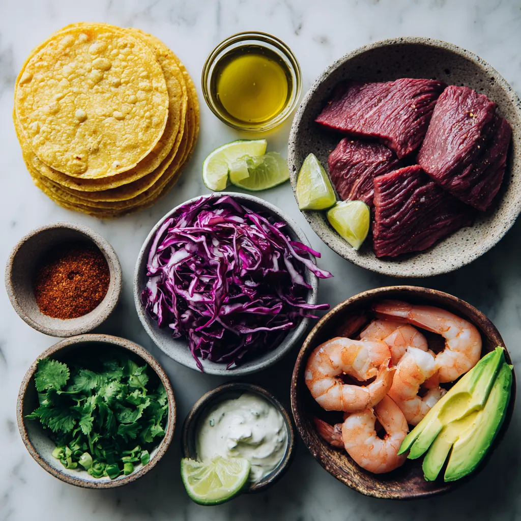 This mix of fresh ingredients brings the dish to life. The shrimp and flank steak provide great flavors. The spices add warmth and depth. Don’t skip the lime juice; it brightens everything. The avocado adds creaminess, while the cabbage gives crunch. This combination makes each bite exciting and enjoyable.