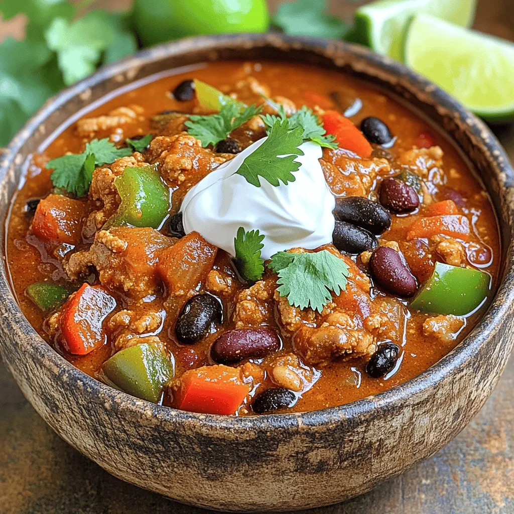 For presentation, use deep bowls. Ladle the chili into them and top with a dollop of sour cream or Greek yogurt. Sprinkle fresh cilantro on top for a pop of color. Add lime wedges on the side for a zesty finish that brightens each bite.