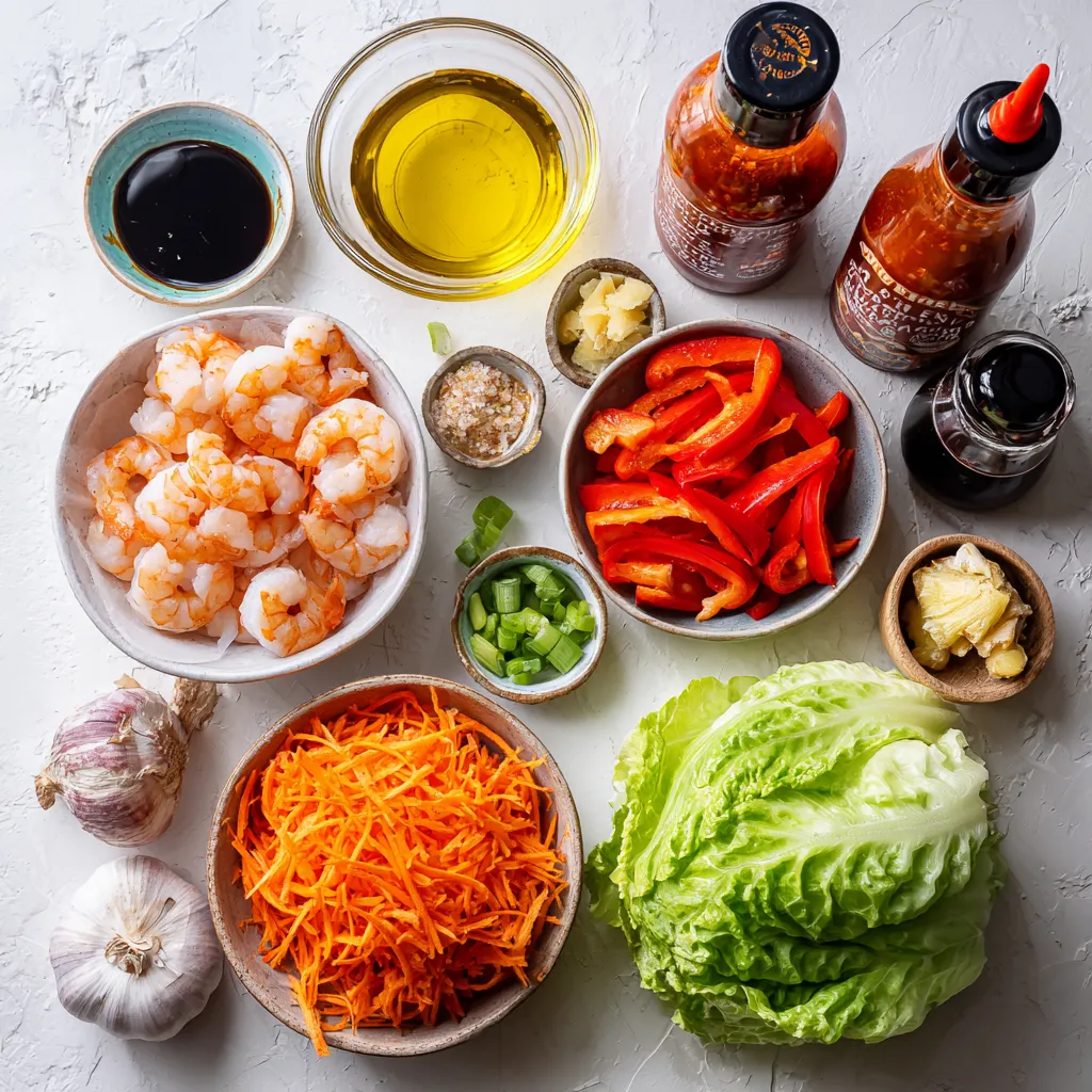 To make Spicy Sriracha Shrimp Lettuce Wraps, you need: