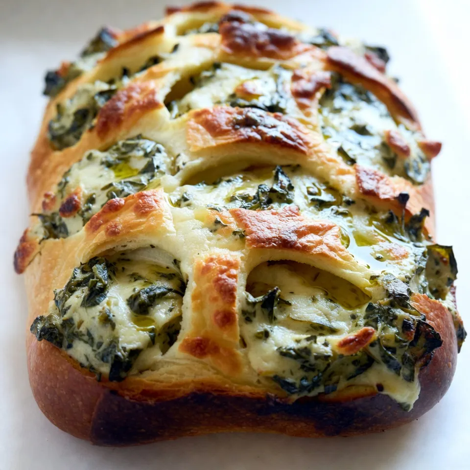 Serve the bread on a rustic wooden board with a side of additional spinach-artichoke dip for dipping. Garnish with fresh parsley or basil for a pop of color.