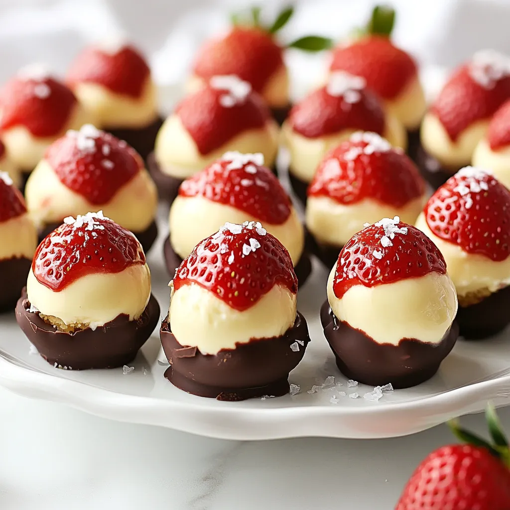 Indulge in the deliciousness of strawberry cheesecake bites with this easy no-bake cheesecake recipe. These chocolate-covered snacks are perfect for parties, bringing a delightful crunch to every bite. With fresh strawberries and a creamy filling, these treats are sure to impress your guests. Try this simple dessert recipe and make your gatherings unforgettable! Save this recipe for your next celebration! #StrawberryCheesecakeBites #NoBakeCheesecake #EasyPartyTreats #ChocolateCoveredSnacks