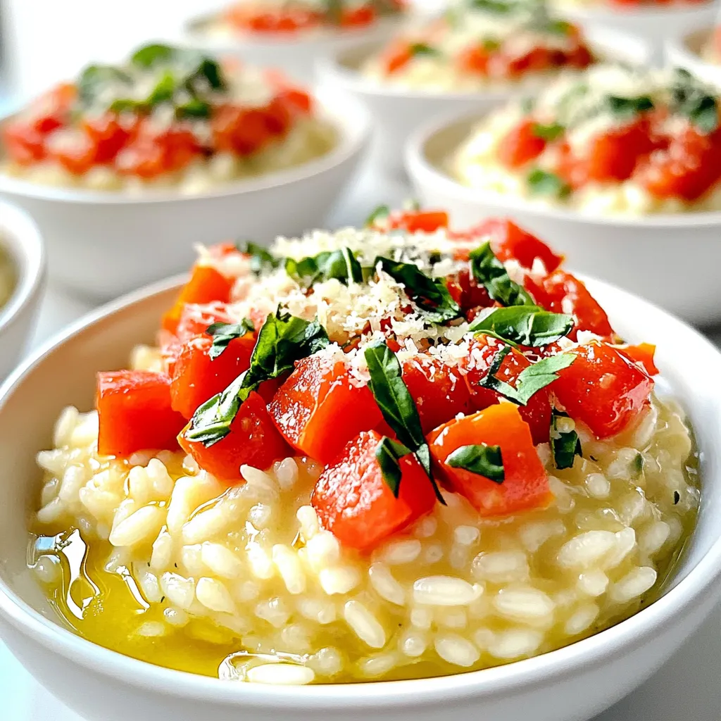 Each ingredient plays a key role. The Arborio rice gives that creamy texture. The vegetable broth adds depth to the flavor. Olive oil brings richness, while onion and garlic provide a savory base. Diced tomatoes add a fresh pop of flavor and color. Parmesan cheese brings a savory, cheesy note. Fresh basil offers brightness and an aromatic finish.
